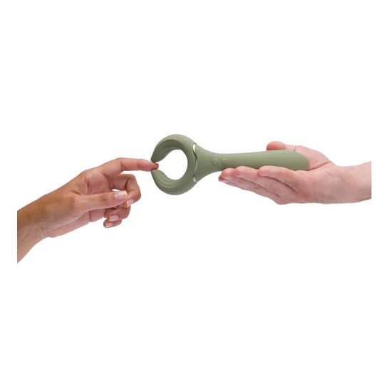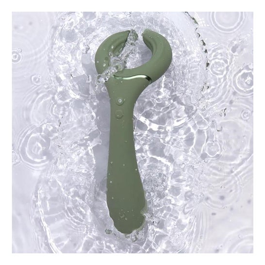 É feito de silicone médico hipoalergénico . Para além disso, é submersível e pode ser utilizado de 32 formas diferentes.