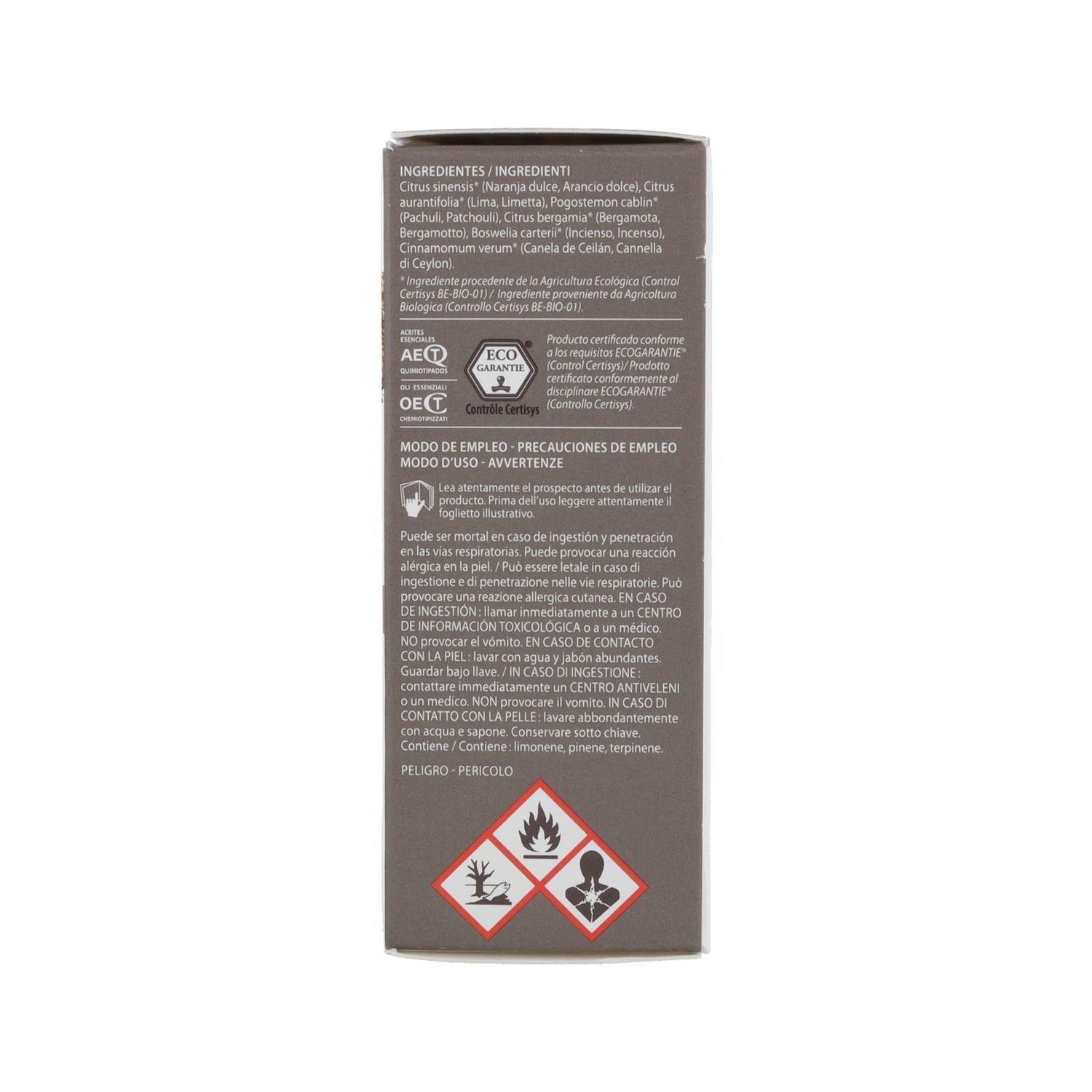CITRUS SINENSIS* (LARANJA DOCE), CITRUS AURANTIFOLIA* (LIMA), POGOSTEMON CABLIN* (PATCHOULI), CITRUS BERGAMIA* (BERGAMOTA), BOSWELLIA CARTERII* (INCENSO), CINNAMOMUM VERUM* (CANELA)(N), NARDOSTACHYS JATAMANSI* (TUBEROSE HIMALAIA).