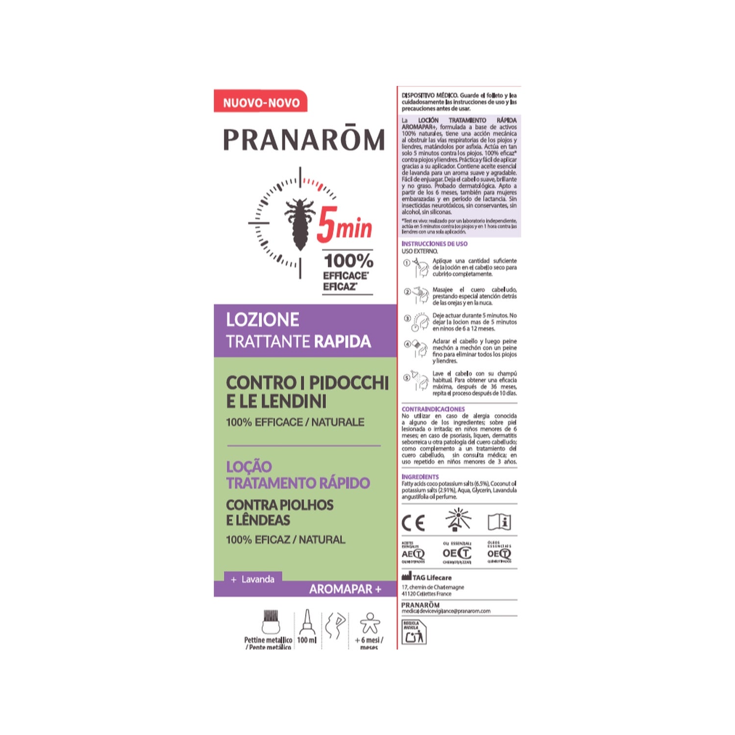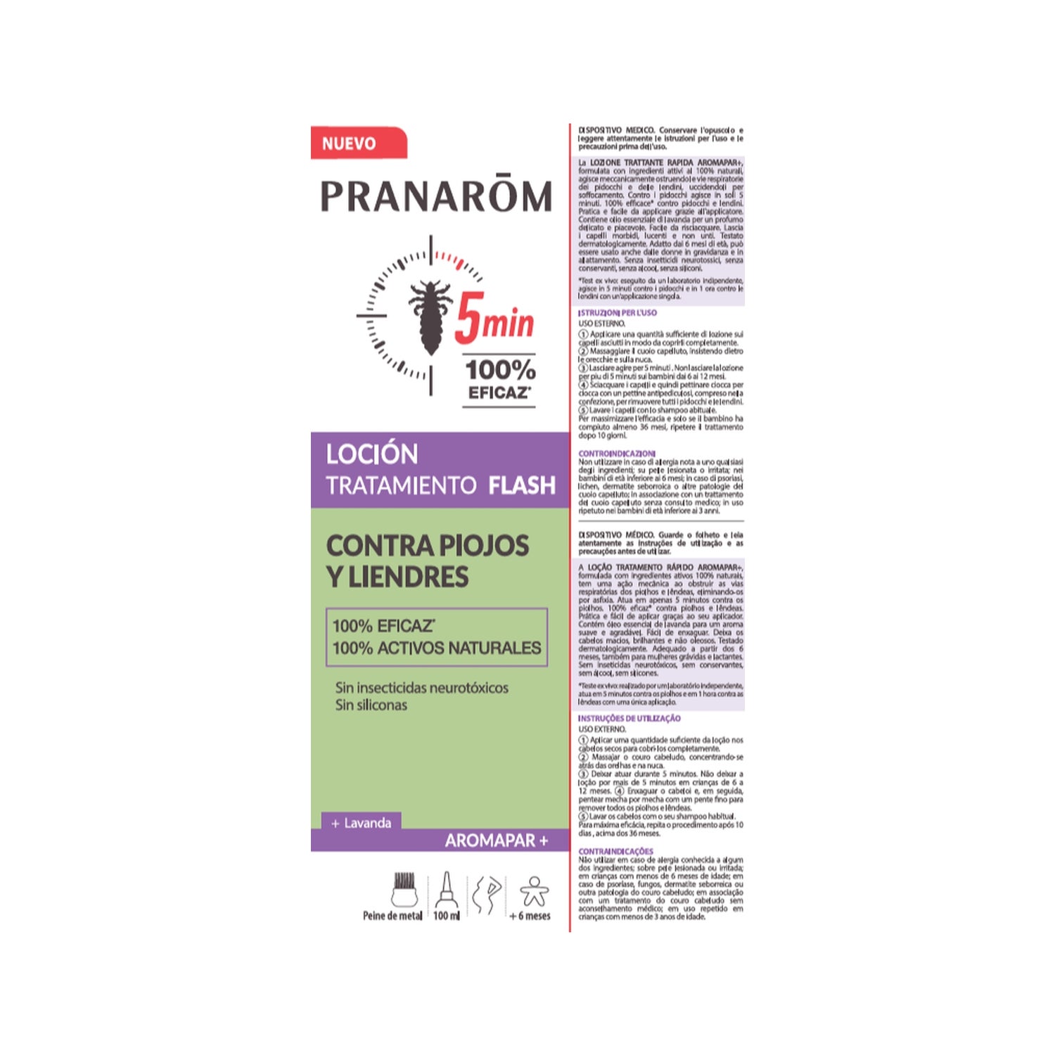 Pranarôm Aromapar+ Loção Tratamento Flash 100ml é um tratamento para piolhos e lêndeas.