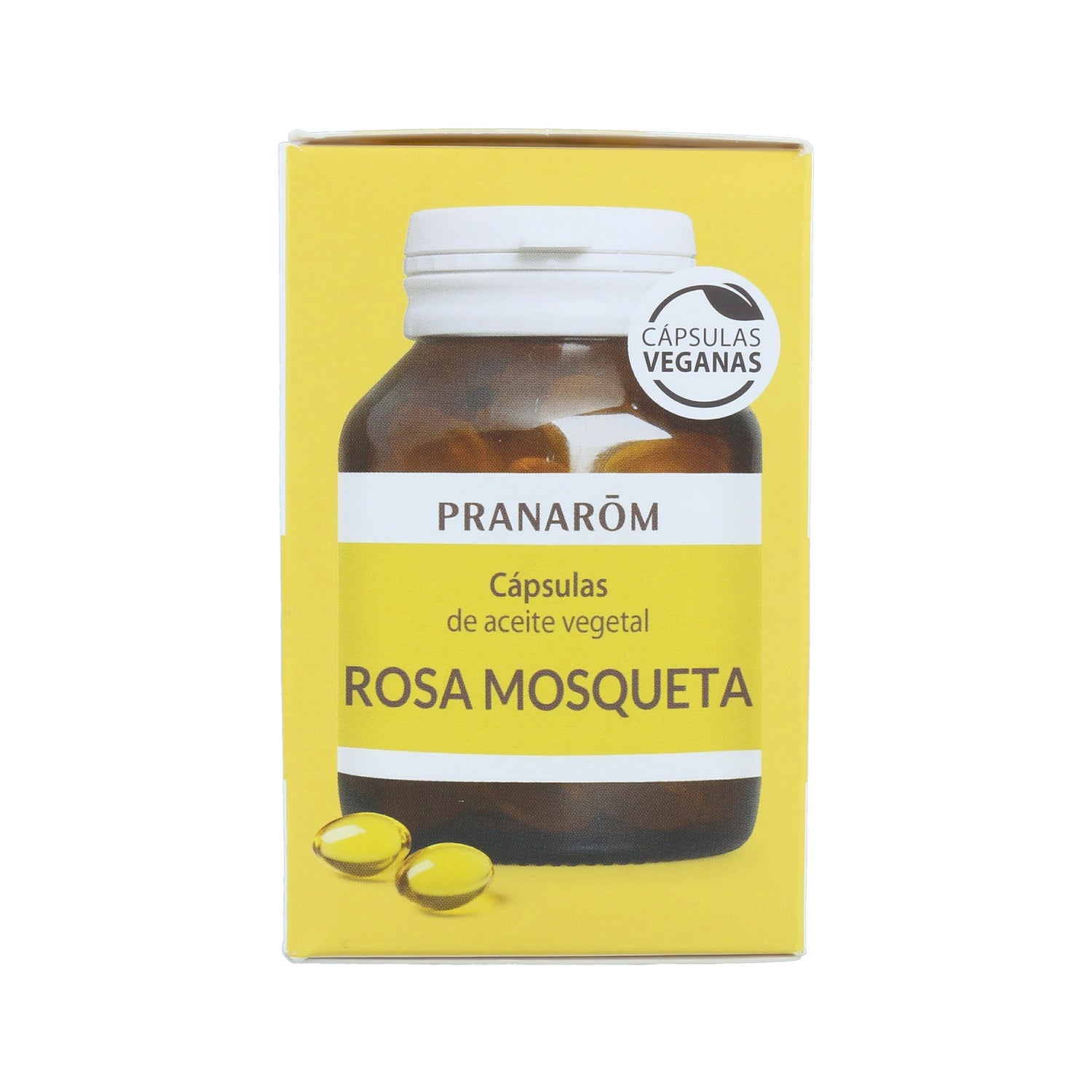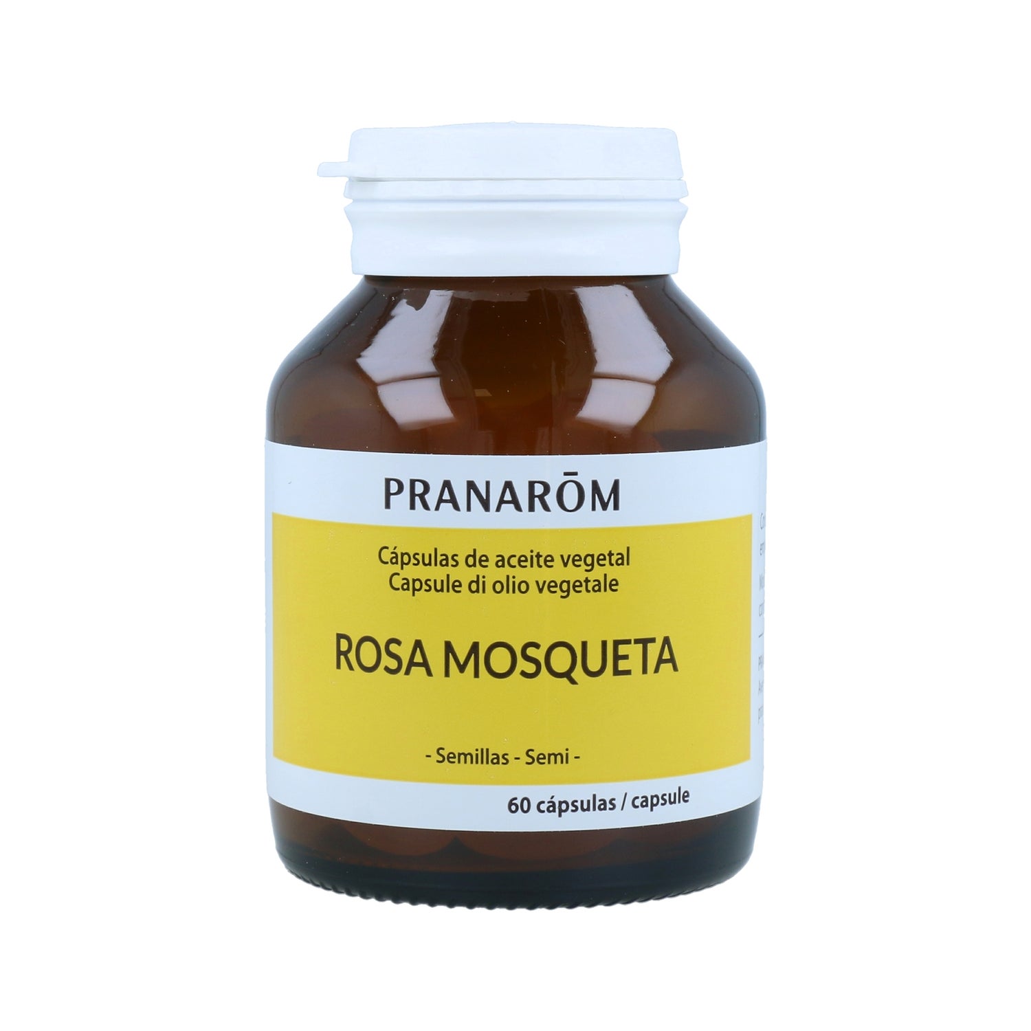Pranarôm Óleo Vegetal de Rosa Mosqueta Cápsulas 60caps é um suplemento alimentar vegan à base de óleo 100% puro, natural e biológico proveniente da primeira prensagem a frio das sementes de rosa mosqueta.