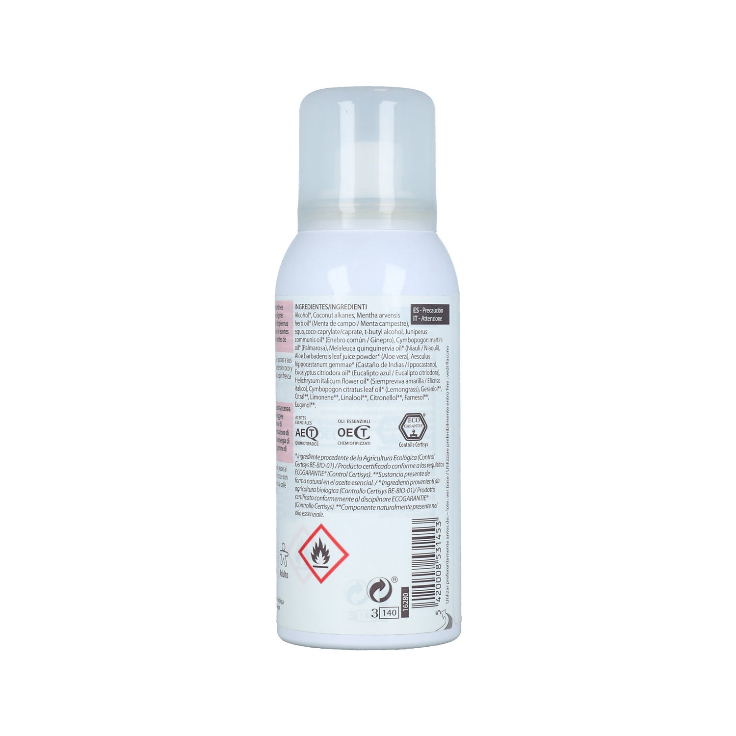 A fórmula contém óleos essenciais de menta selvagem, helichrysum e extractos naturais de botão de castanha da Índia, aloé vera e óleo de coco.