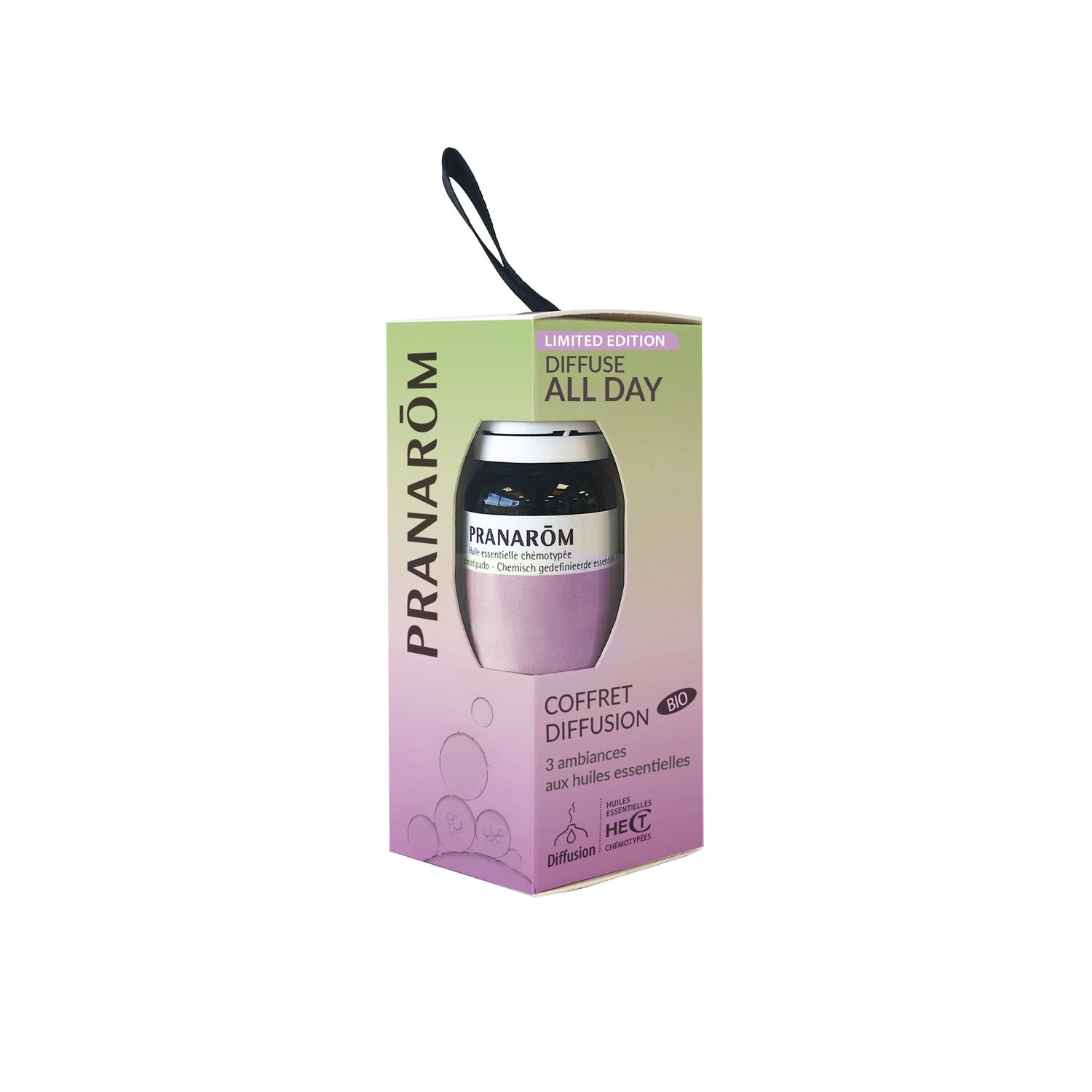 O laboratório Pranarôm se desenvolveu ao longo de mais de 30 anos e é hoje o especialista indiscutível em soluções inovadoras elaboradas a partir de óleos essenciais BIO 100% naturais, 100% puros (não misturados com óleos de qualidade inferior) e 100% íntegros (não alterados, não descoloridos, não retificados), para cuidar-se de outra maneira. Pranarôm garante o acesso aos melhores óleos essenciais graças a uma seleção meticulosa de matérias-primas e a um rigoroso enfoque científico. Digestão, respiração, estimulação do sistema imunológico, maternidade… As soluções Pranarôm oferecem respostas específicas em todos os âmbitos da saúde e estão adaptadas para toda a família. A caixa Diffuse All Day reúne 3 sinergias de óleos essenciais prontas para difundir — Wake Up, Refresh & Night — para acompanhar e dar ritmo ao seu dia.
