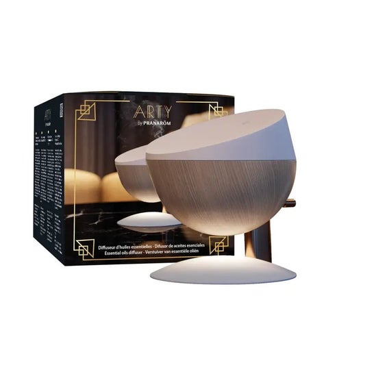 Difusor de óleo essencial com um desenho decorativo para perfumar todo o tipo de espaços. Tem uma função de iluminação LED, o que dá uma sensação de que o dispositivo está a levitar no ar. Ajuda a criar atmosferas relaxantes em qualquer ambiente doméstico ou de trabalho. Vem na cor de madeira de faia com detalhes brancos.