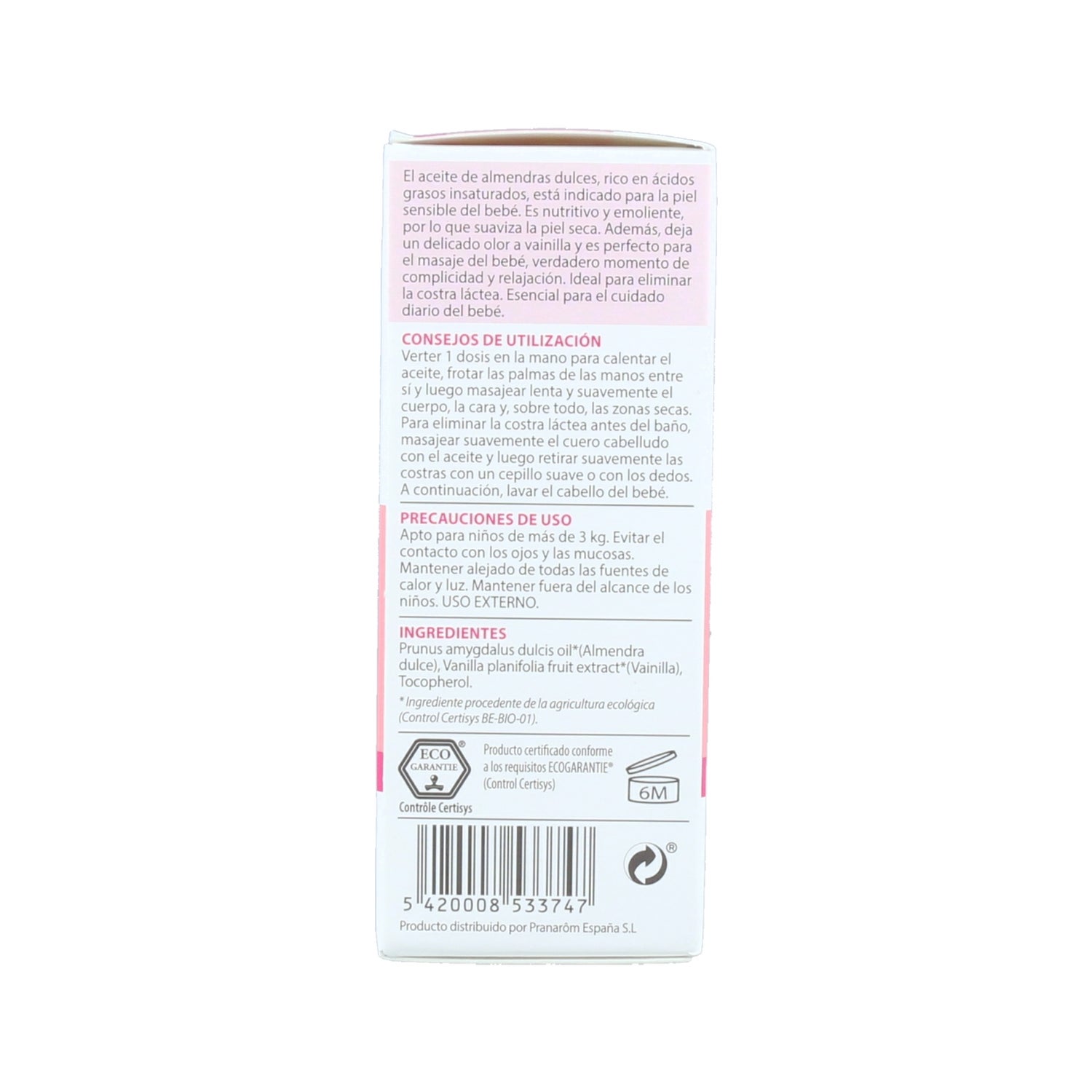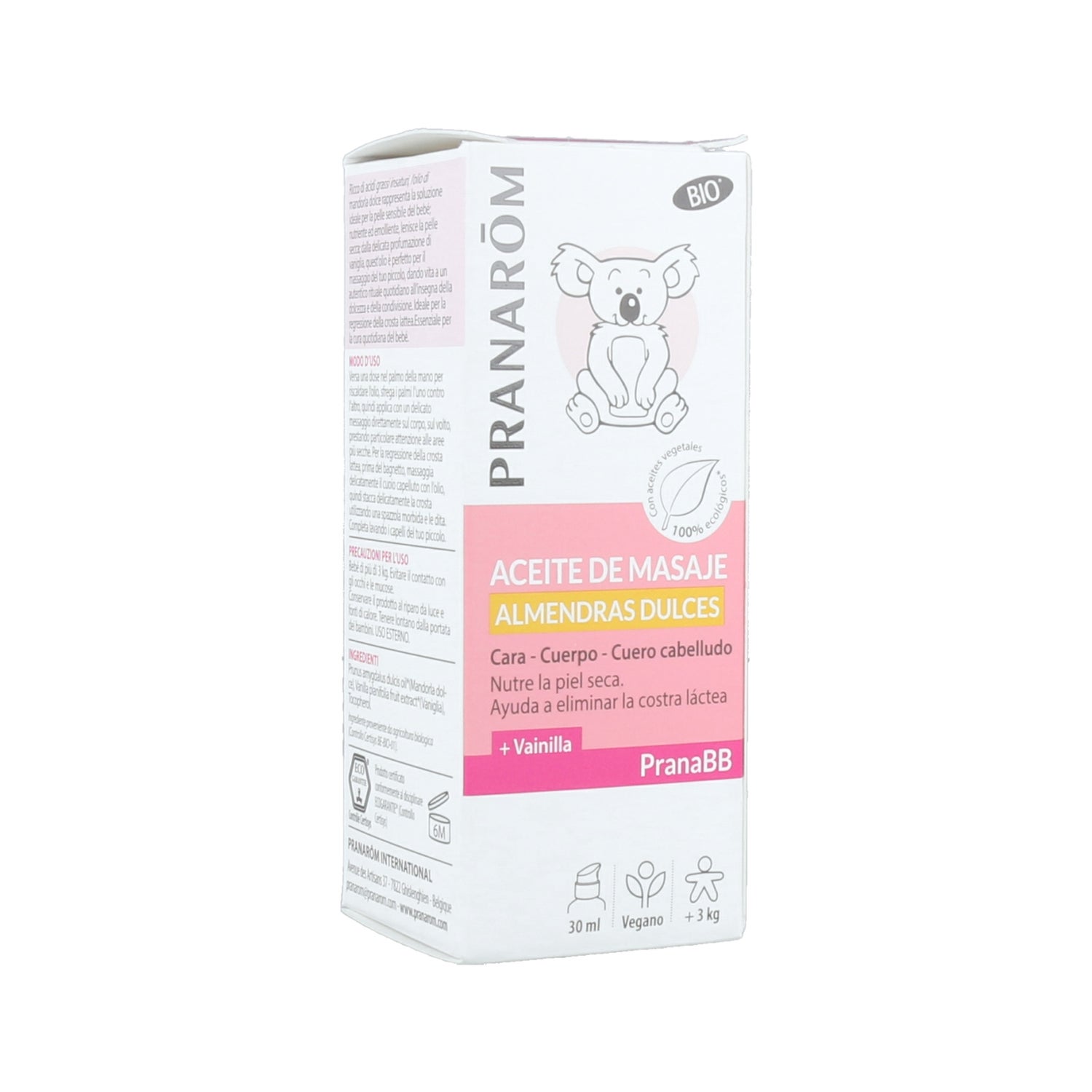 Pranarôm PranaBB Óleo de Massagem de Amêndoas Doces 30ml é um óleo vegan ideal para o cuidado do bebé.