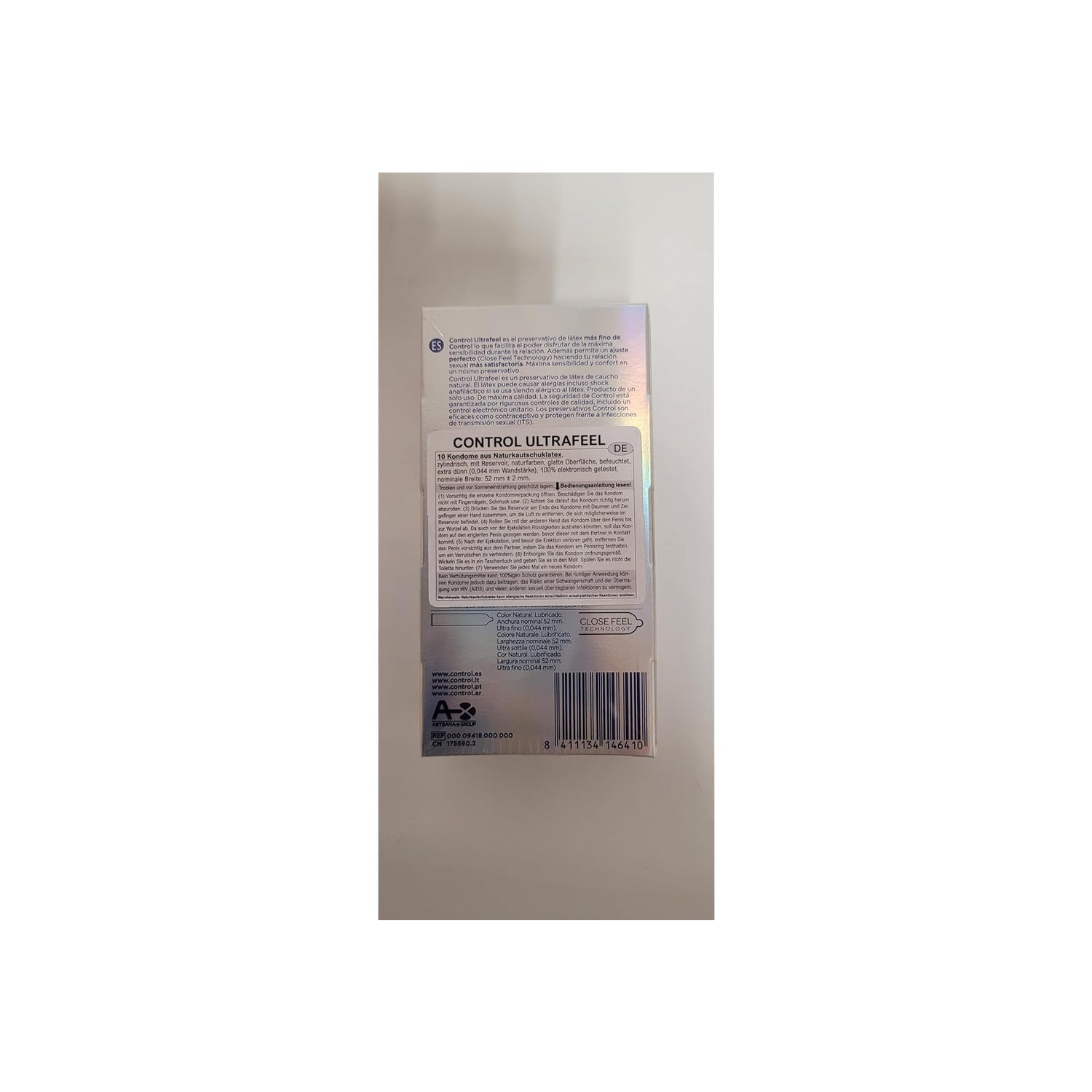 Preservativos Control Ultra Feel com 10 Preservativos. Produto projetado 30% mais fino do que a linha padrão. O produto ultra fino garante máxima sensibilidade durante as relações devido à espessura mínima (0,04 mm). Possui as seguintes propriedades: largura nominal de 52 mm. Lubrificação ótima e sistema de abertura fácil. Permite um ajuste perfeito (Tecnologia Close Feel). A segurança da Control é garantida por rigorosos controles de qualidade, incluindo um controle eletrônico unitário. Os preservativos Control são eficazes como contraceptivos e protegem contra doenças sexualmente transmissíveis (DSTs).