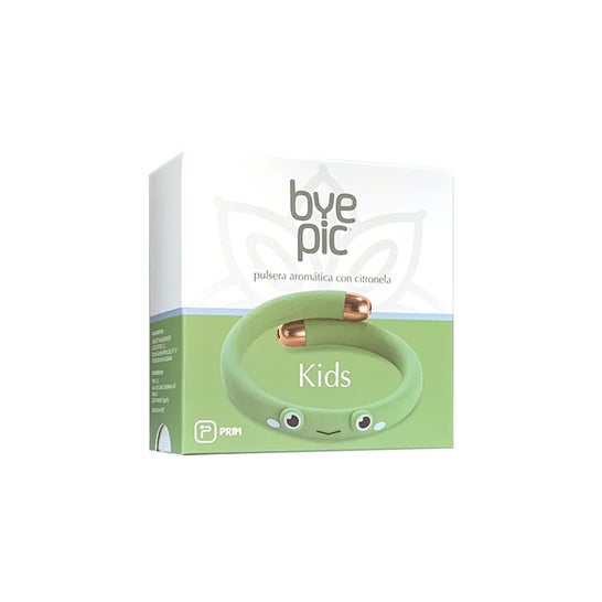 Prim Bye Pic Pulseira Aromática Citronela Ranita 1ud é uma pulseira de silicone flexível e resistente à água que atua como repelente eficaz para os mosquitos. Elaborada à base de silicone flexível que contém um difusor com citronela, um óleo essencial natural que repele os mosquitos. Além disso, não contém DEET, um repelente de mosquitos químico que pode irritar a pele. A pulseira liberta citronela durante até 240 horas e protege durante todo o dia. Possui também um design com olhinhos e cara de rã.
