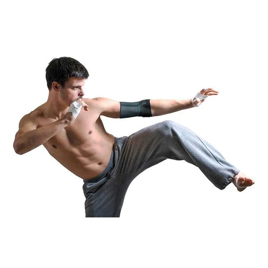 Prim Neoprair Cotoveleira TS 1ud é uma cotoveleira elaborada em neopreno respirável que protege e cuida da zona correspondente. É ideal para casos de epicondilite (cotovelo do tenista), epitrocleite (cotovelo do golfista) e pós-traumatismos. O material de 3mm de espessura e compressão tridimensional garantem a sua eficácia. Incorpora uma tecnologia especial que mantém a pele seca. Além disso, dispõe de uma cinta no antebraço para um ajuste preciso. Tamanho S: 23-26 cm.