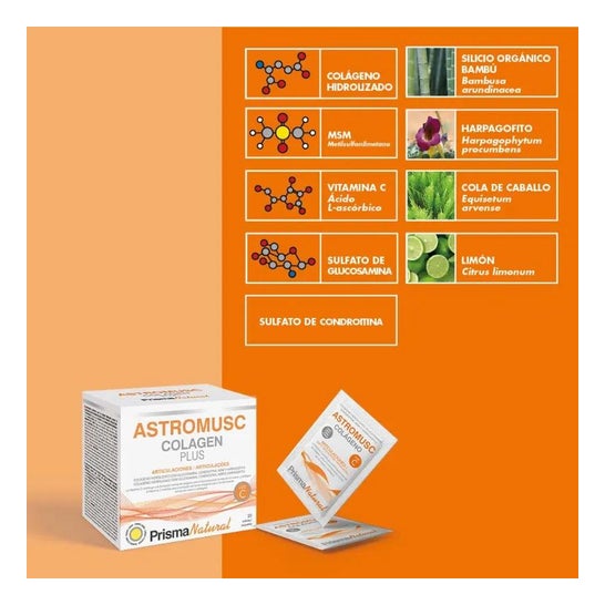 Prisma Natural Astromusc 20sachês é um suplemento alimentar que contribui para o fortalecimento das articulações.