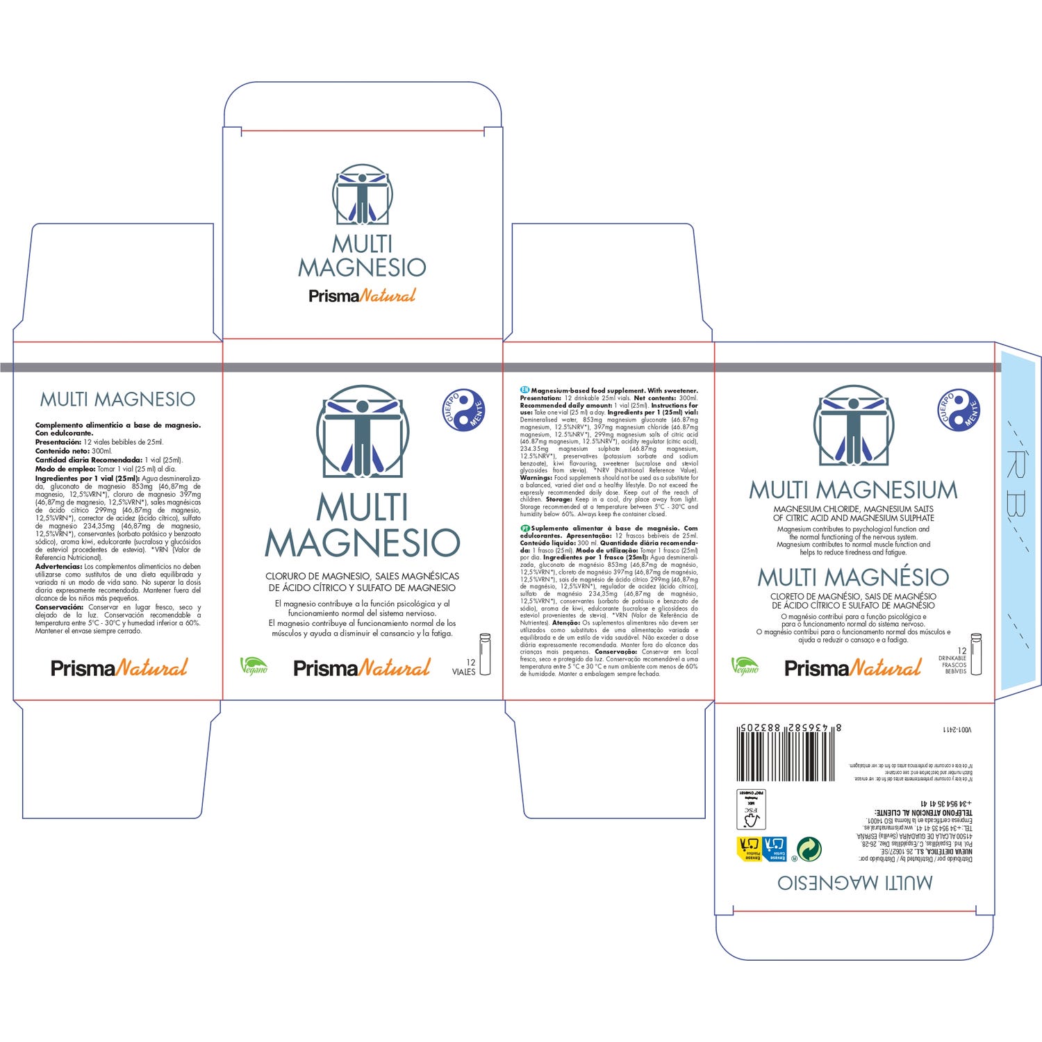 Prisma Natural Multimagnesio 12x25 ml é um complemento alimentar que incorpora três tipos de magnésio, projetado para satisfazer diversas necessidades do organismo. Este produto é simples de usar, sendo ideal para aqueles que desejam experimentar uma maior força, relaxamento e energia.