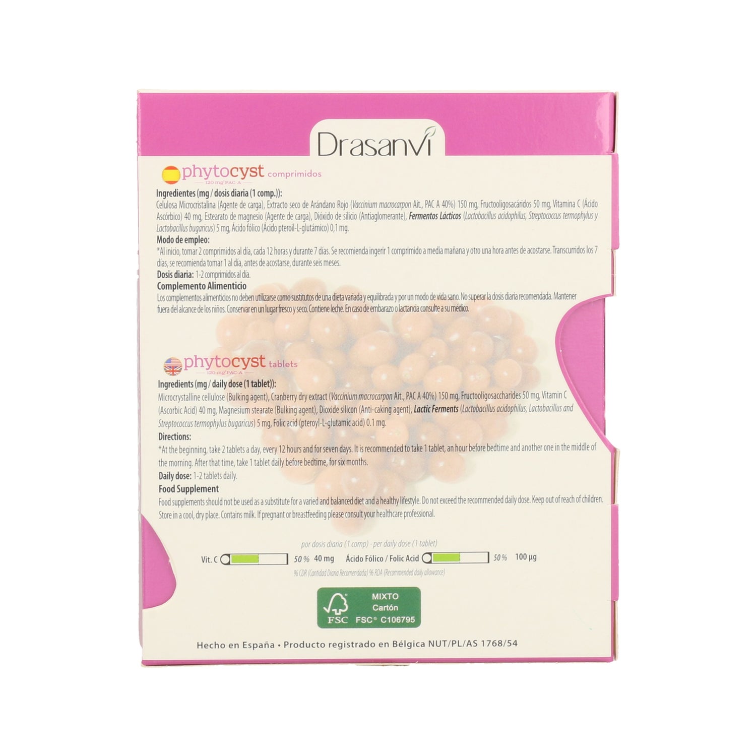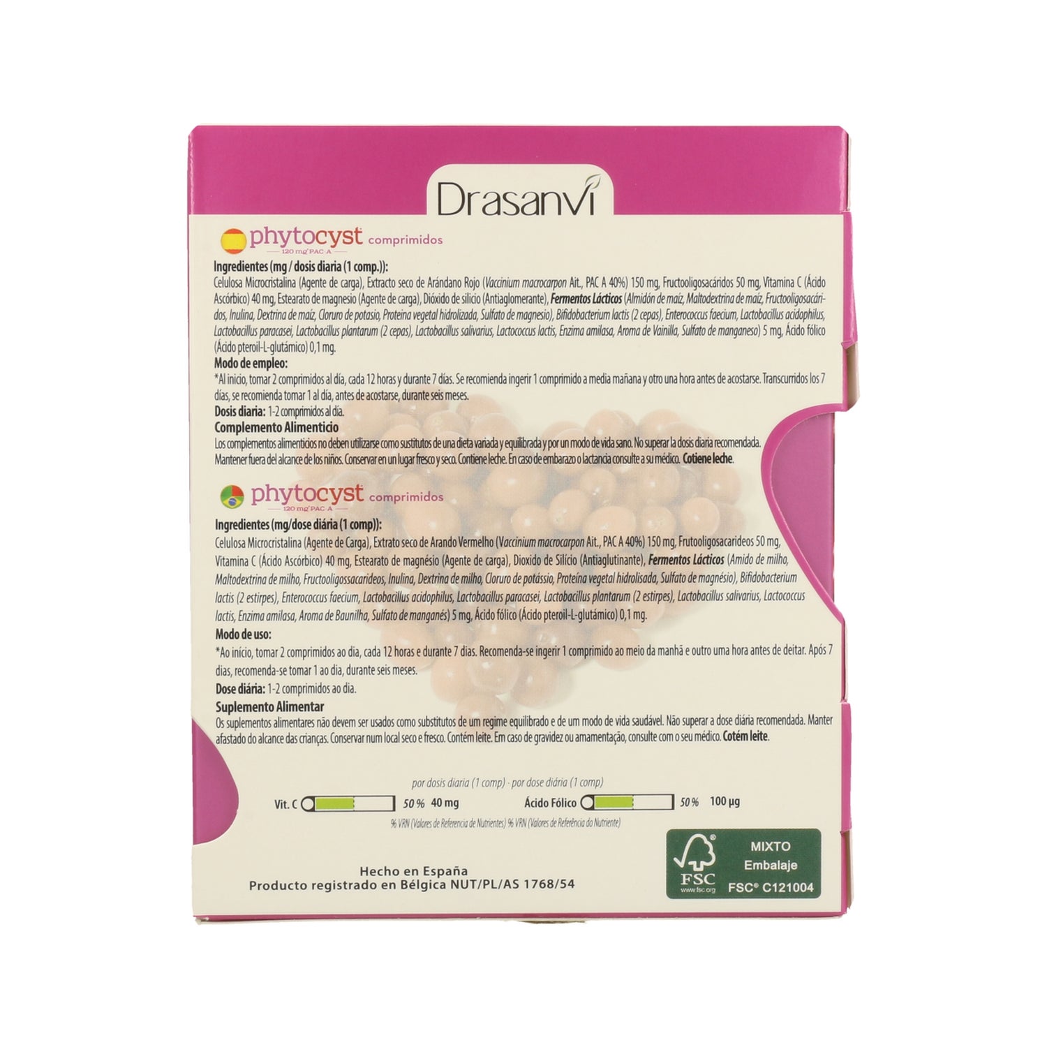 Suplemento alimentar feito de arando, fermentos lácticos, oligossacarídeos, vitamina C e ácido fólico. Ajuda a limpar e eliminar toxinas que podem alojar-se no tracto urinário. Ajuda a manter a saúde circulatória e estimula os processos diuréticos naturais. Isento de açúcares, edulcorantes, corantes e conservantes.