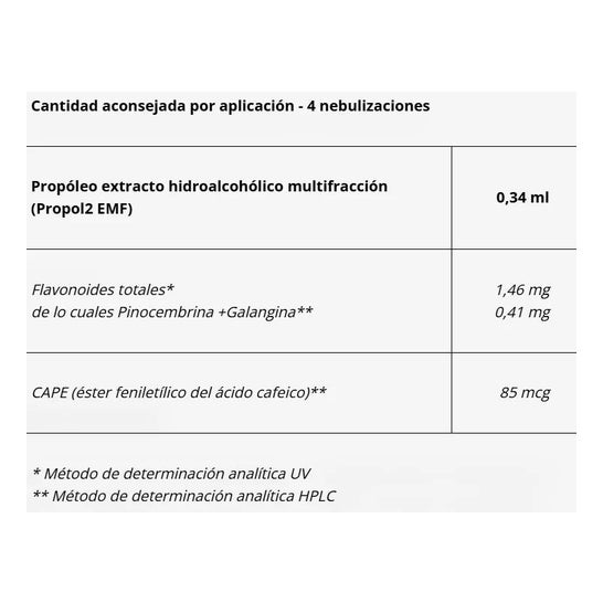 É feito a partir de própolis, obtido por extracção e fraccionamento, eliminando borras e filamentos sólidos. Para além de flavonóides e ácido cafeico, contém extracto hidroalcoólico de Propol2 EMF, que ajuda a obter todas as propriedades do própolis.