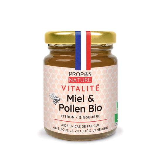 Propos' Nature Vitalité Mel & Pólen Bio 125g ajuda a reduzir a fadiga, a recuperar a motivação e a energia.