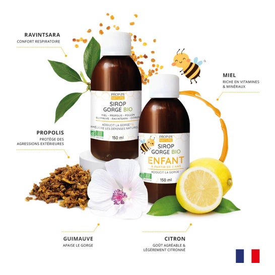 Este xarope foi projetado para suavizar e acalmar a garganta. Enriquecido com pólen bio, apoia as defesas naturais do organismo. Seu sabor doce e agradável e sua eficácia rápida o tornam um aliado ideal em época de inconfortos invernais.
