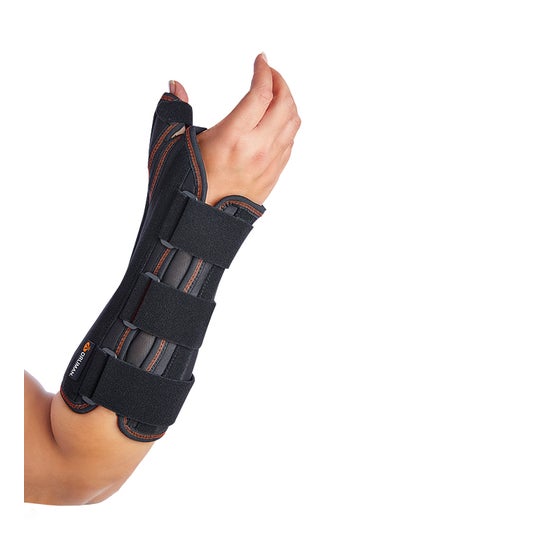 Esta munhequeira conta com uma elaboração interna de tecido respirável de felpo, o qual dispõe de um tratamento antibacteriano. Esta ortese produzida pela Orliman tem uma placa palmar e foi fabricada com um material de três camadas semi-rígido respirável. Isto serve principalmente para permitir segurar e estabilizar as articulações corporais, especialmente na zona do pulso e proporcionar conforto ao imobilizar o polegar. Graças ao seu design, conta com a capacidade de se adaptar a morfologias em que é possível verificar uma diferença evidente entre o pulso e o antebraço. Este tipo de tala é feita de alumínio com um sistema de liga resistente a qualquer tipo de impactos. Também dispõe de uma série de reforços dorsais rígidos, bem como de uma almofada interna com máxima proteção.