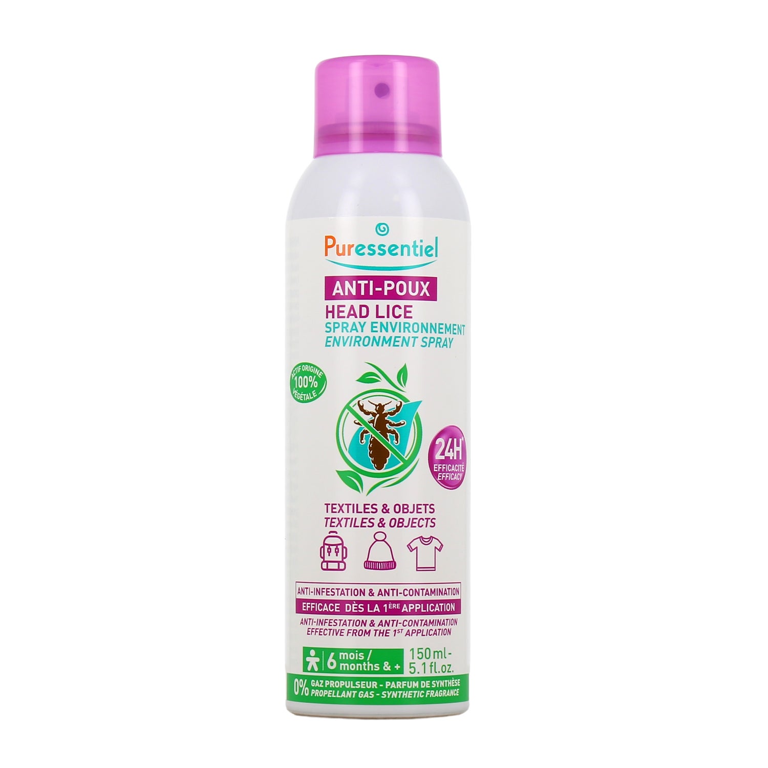 Puressentiel Antipiojos Spray Meio Ambiente 24H é um produto projetado para proteger o ambiente de possíveis infestações por piolhos. É ideal para situações em que foram detectados piolhos no cabelo de uma criança ou se você teve contato com uma pessoa infestada. Este spray foca na importância de tratar também o ambiente, uma vez que os piolhos podem sobreviver em objetos e têxteis, facilitando a propagação de maneira indireta.