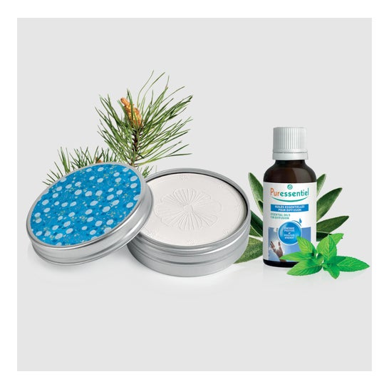 Puressentiel Difusor Cerâmica Galet Nômade se apresenta sob a forma de um kit de aromaterapia, composto por um galet de cerâmica e um complexo de difusão.