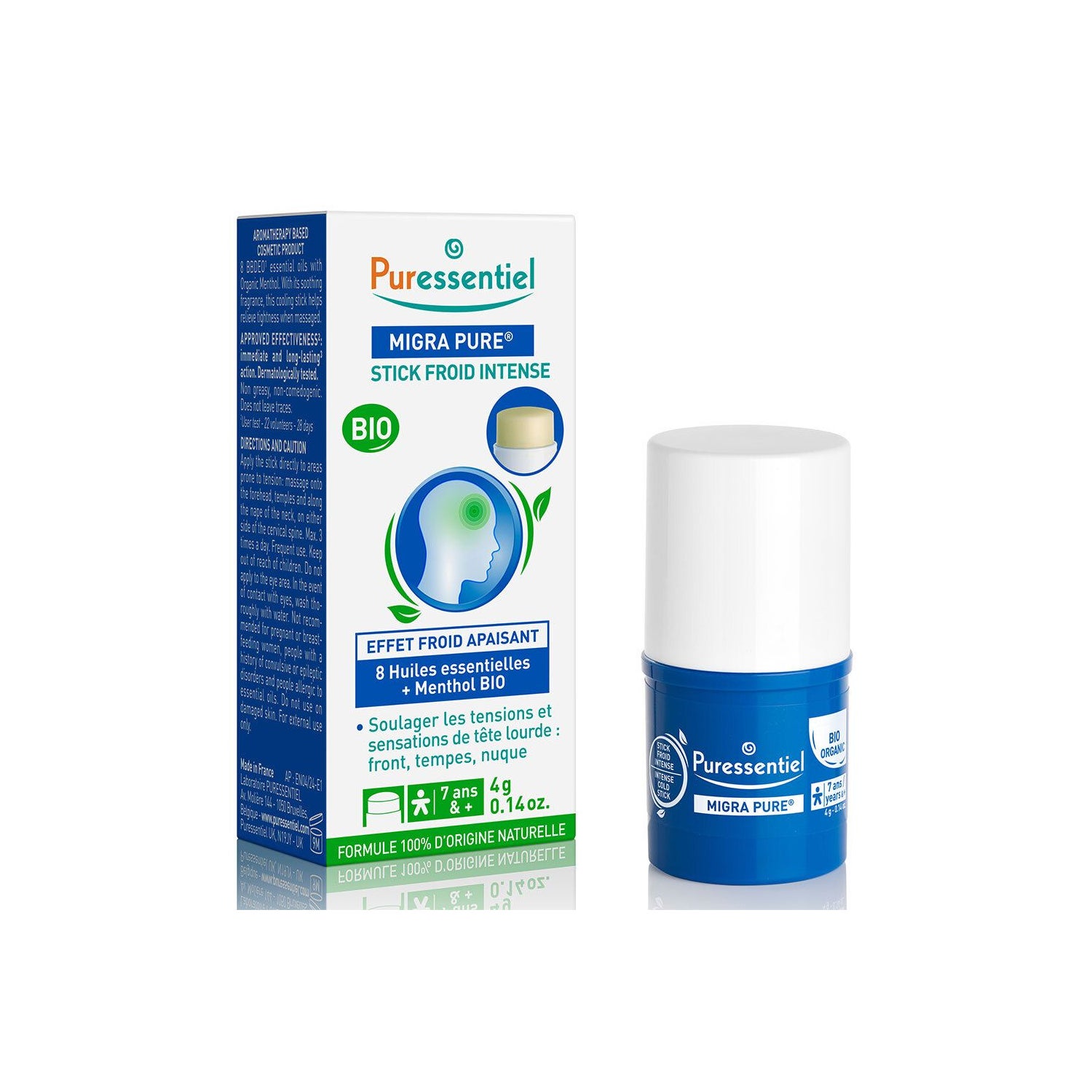 Puressentiel Migra Pure Stick Frio Intenso 4 gr é uma solução prática e eficaz para aliviar as tensões e desconfortos na cabeça. Seu efeito frio intenso proporciona um alívio rápido, agindo em menos de dez minutos nas áreas de tensão, como: