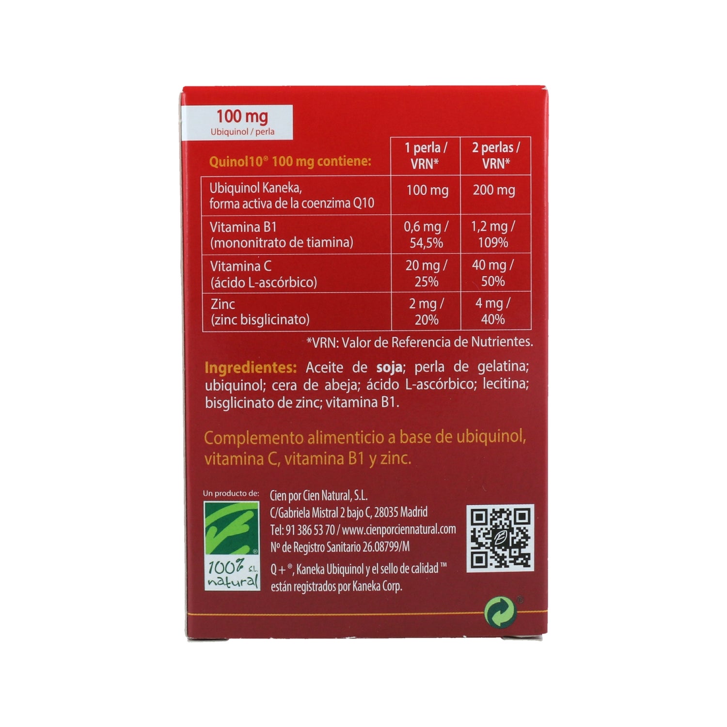 100% Natural Quinol 10 30 cápsulas é um complemento perfeito para todos, mas para aqueles que estão há 40 anos é especialmente recomendado, uma vez que deve ter-se em mente que a capacidade de transformar ubiquinona em ubiquinol diminui com a idade e neste produto a coenzima Q10 já é apresentada sob a forma de Ubiquinol.Também contém vitamina B1, que contribui para o funcionamento normal do sistema cardiovascular, e vitamina C, que suporta o metabolismo energético normal.
