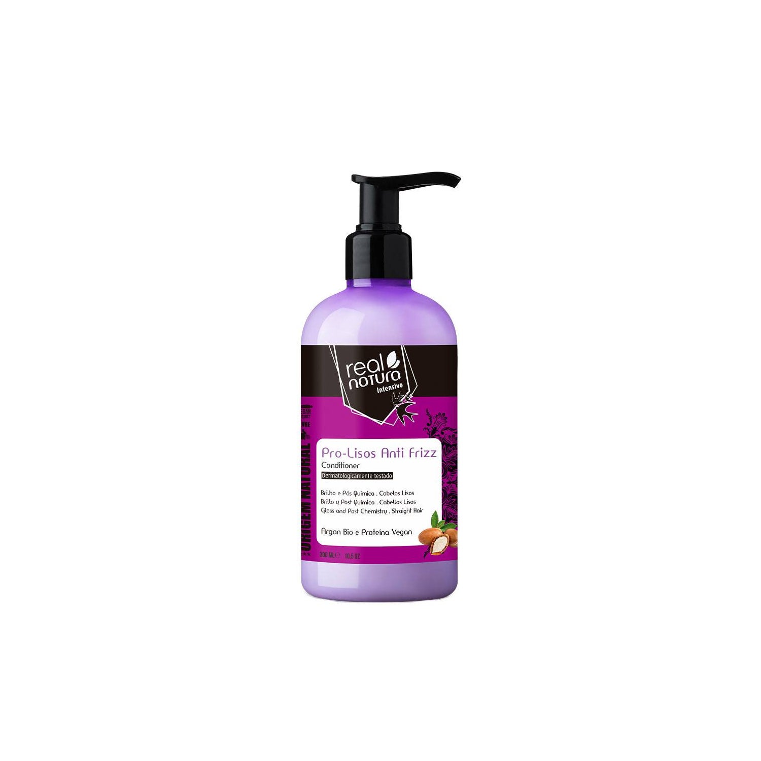 Real Natura Condicionador Sem Sal Pro-Lisos Anti Frizz Argan 300ml é a opção ideal para quem deseja um cabelo liso, suave e livre de frizz após o alisamento. Este condicionador foi projetado para prolongar o efeito do alisamento e facilitar a escovação, sendo um aliado essencial no controle do frizz.