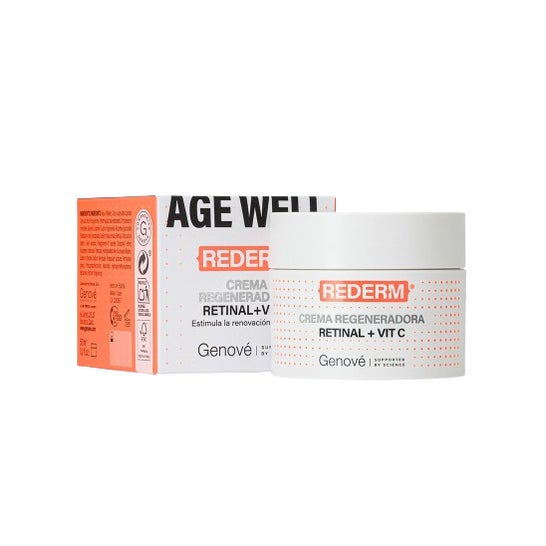 Rederm Retinal + Vitamina C é um creme para uma rotina intensiva à base de retinal, vitamina C e ácido hialurônico que estimula a renovação progressiva da pele para uma ação antienvelhecimento global. Esta combinação de retinal e vitamina C contribui para melhorar a textura, potencializar a firmeza e manter a pele mais uniforme ou luminosa.