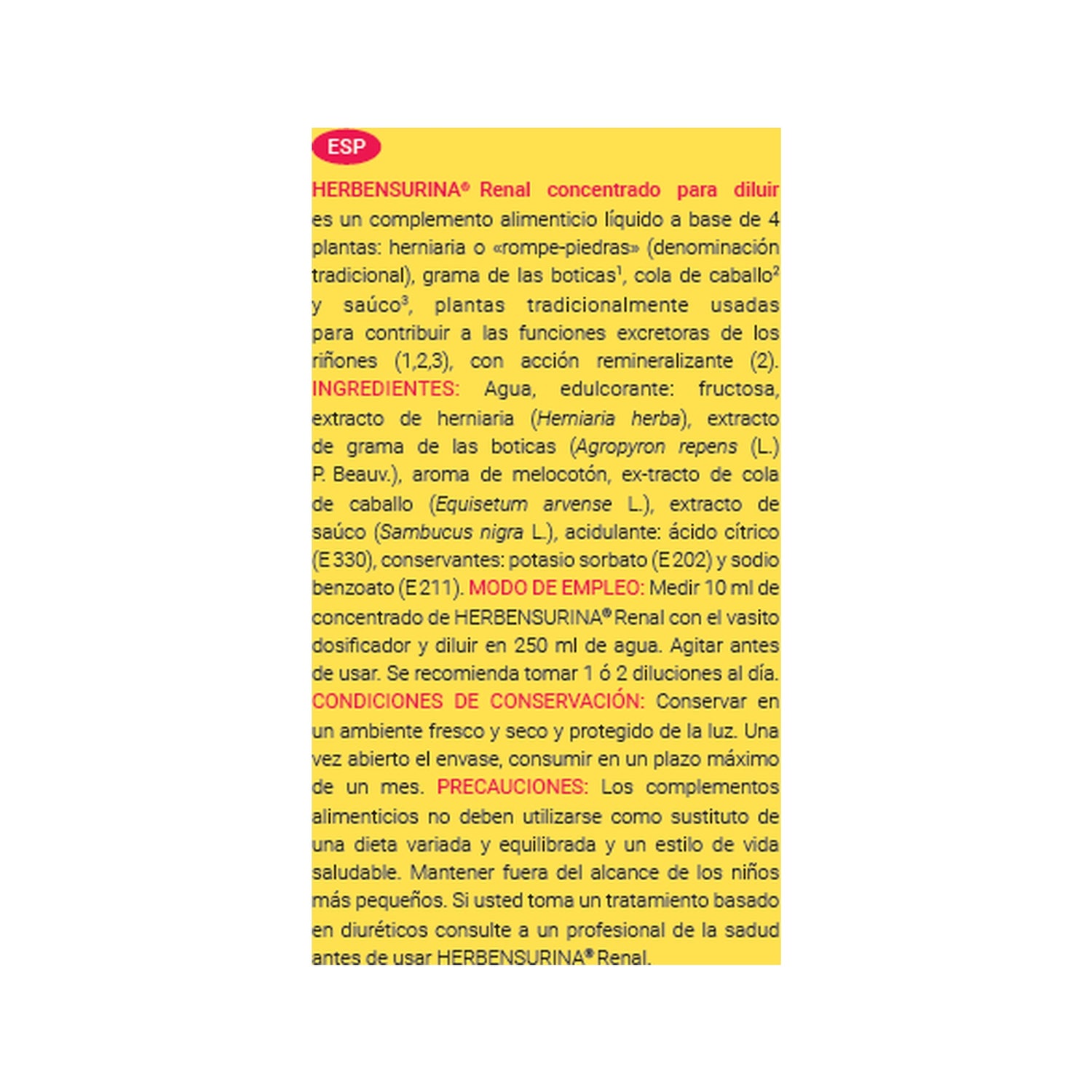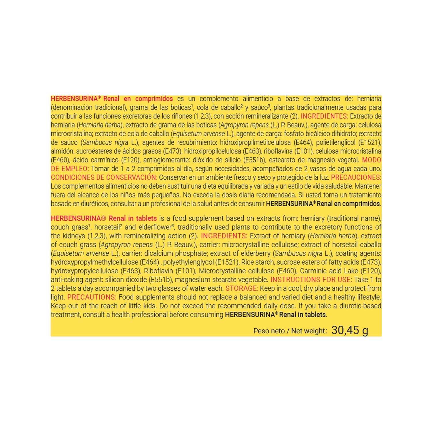 Herbensurine Renal é umsuplemento alimentar em forma de comprimidos com uma mistura cuidadosa de plantas que ajudam o bem-estar do tracto urinário e reduzem o risco de apanhar pedras nos rins. Os componentes do Herbensurine são: