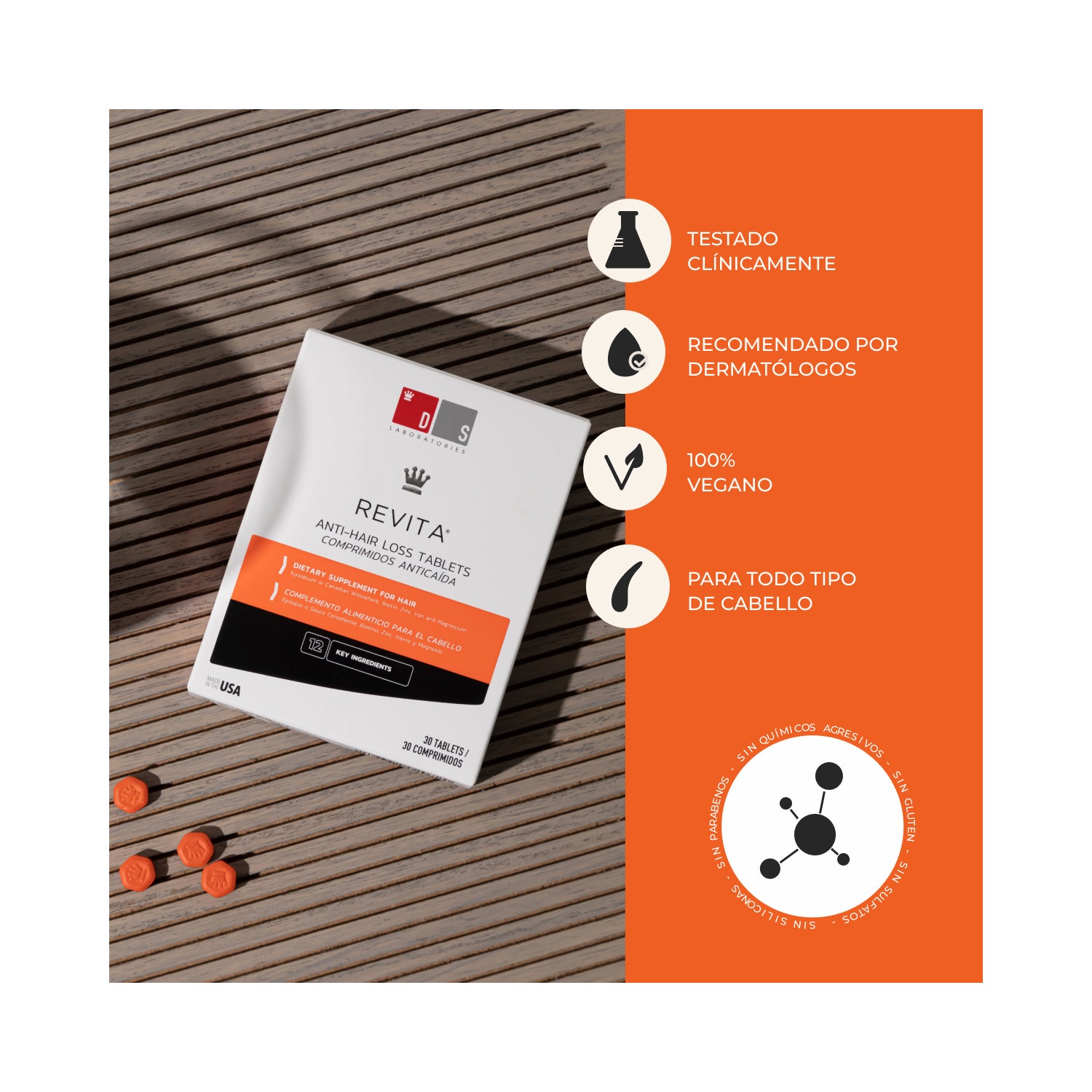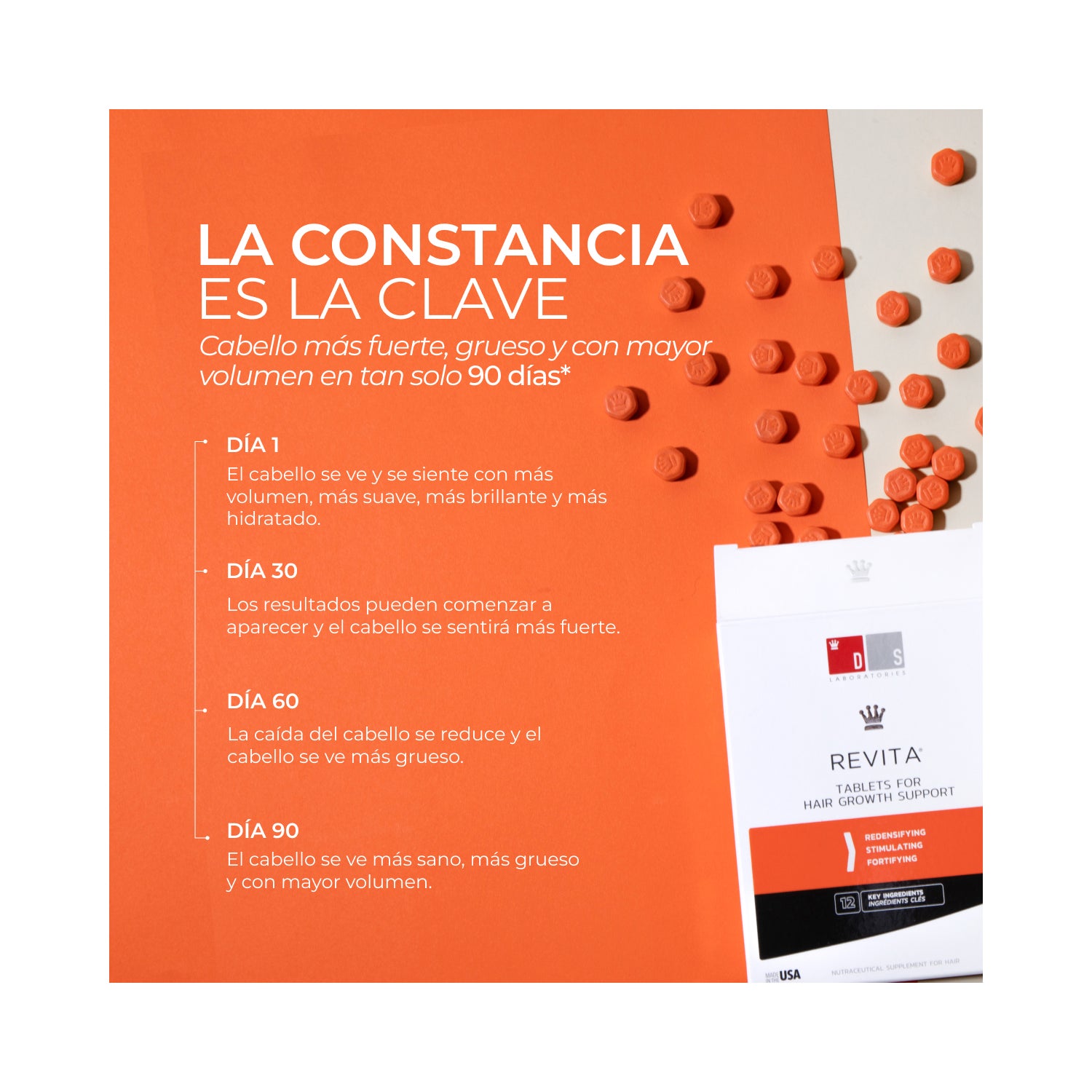 Revita Anti-Hair Loss 90comp é um suplemento alimentar em forma de comprimidos que ajuda a fortalecer o cabelo e a prevenir a sua queda .
