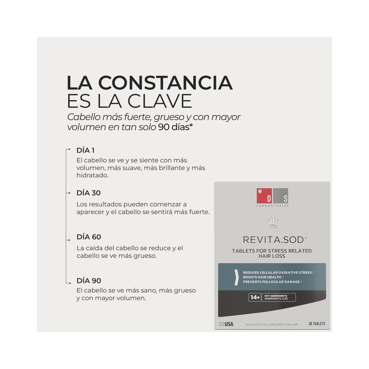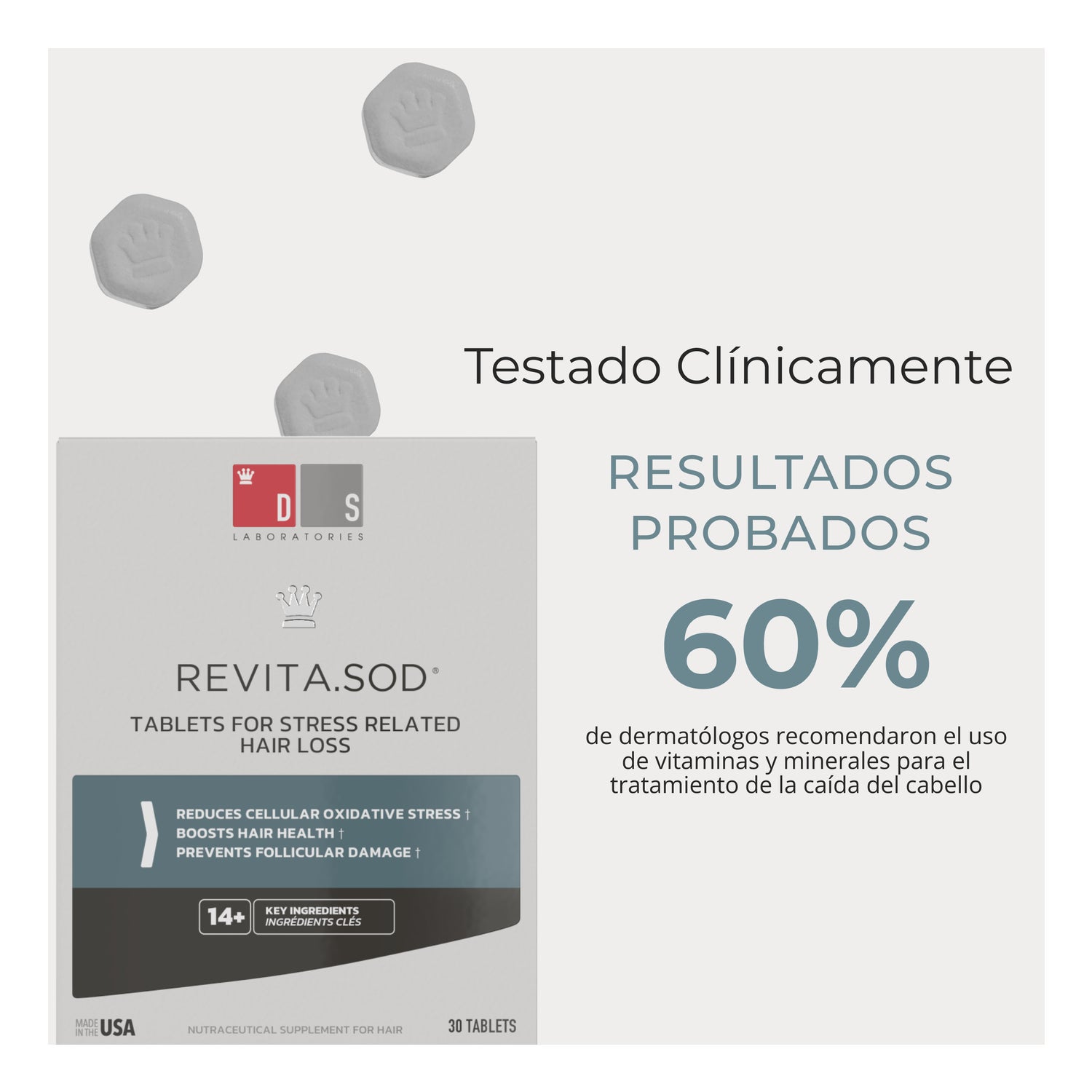 Revita SOD Hair Loss 30comp é um suplemento alimentar que estimula o crescimento do cabelo e contraria os efeitos do stress e dos danos oxidativos .