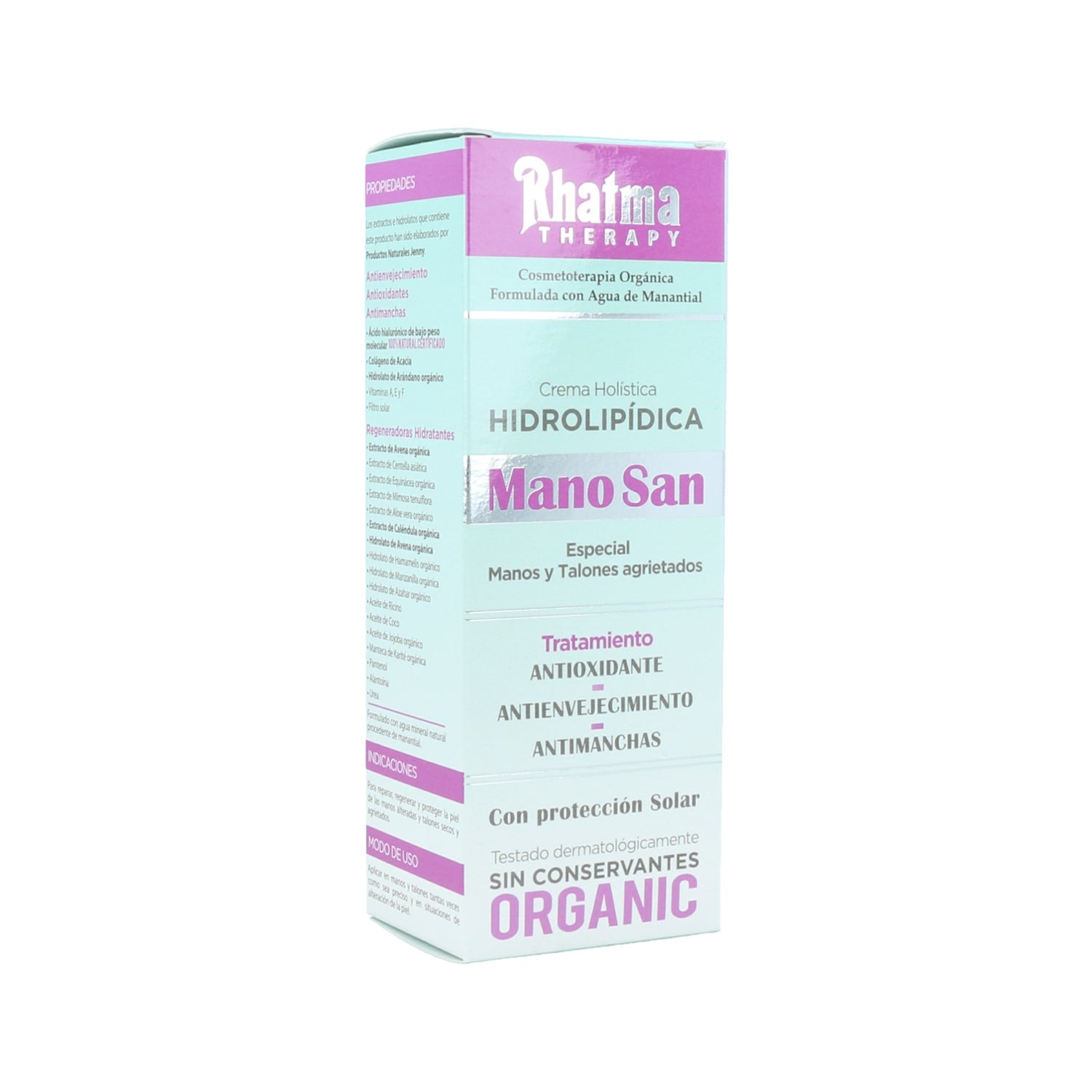 Rhatma Hand San creme para mãos secas e sensíveis é uma loção suave perfeita para reparar mãos danificadas e extremamente sensíveis. É um tratamento óptimo para regenerar a cutícula, ao mesmo tempo que endurece as unhas.