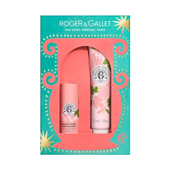 Roger & Gallet Fleur de Figuier Set Bálsamo Labial + Crema Mãos é um estojo festivo que combina um bálsamo labial e um creme para as mãos, oferecendo um ritual de cuidado para lábios e mãos. Este conjunto é inspirado em um universo vibrante e colorido criado pela artista Eclette, evocando a magia do Grande Bazar de Natal.