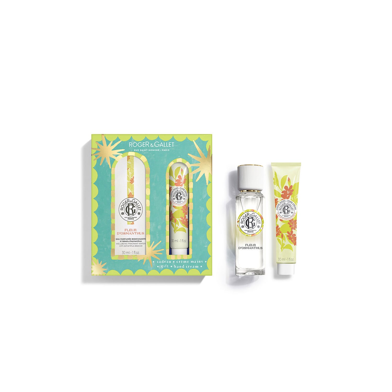 Roger & Gallet Flor de Osmanthus Pack Água Perfumada + Mãos reúne uma água perfumada revitalizante e um creme para as mãos hidratante para um ritual de bem-estar diário com a frescura floral do osmanthus.