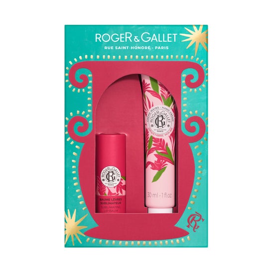 Roger & Gallet Gingembre Rouge Set Bálsamo Labial + Creme para Mãos é um estojo festivo que combina elegância e cuidado pessoal. Projetado para as celebrações, este set apresenta um universo perfumado baseado na criatividade da artista Eclette, que inspirou um design vibrante e colorido.