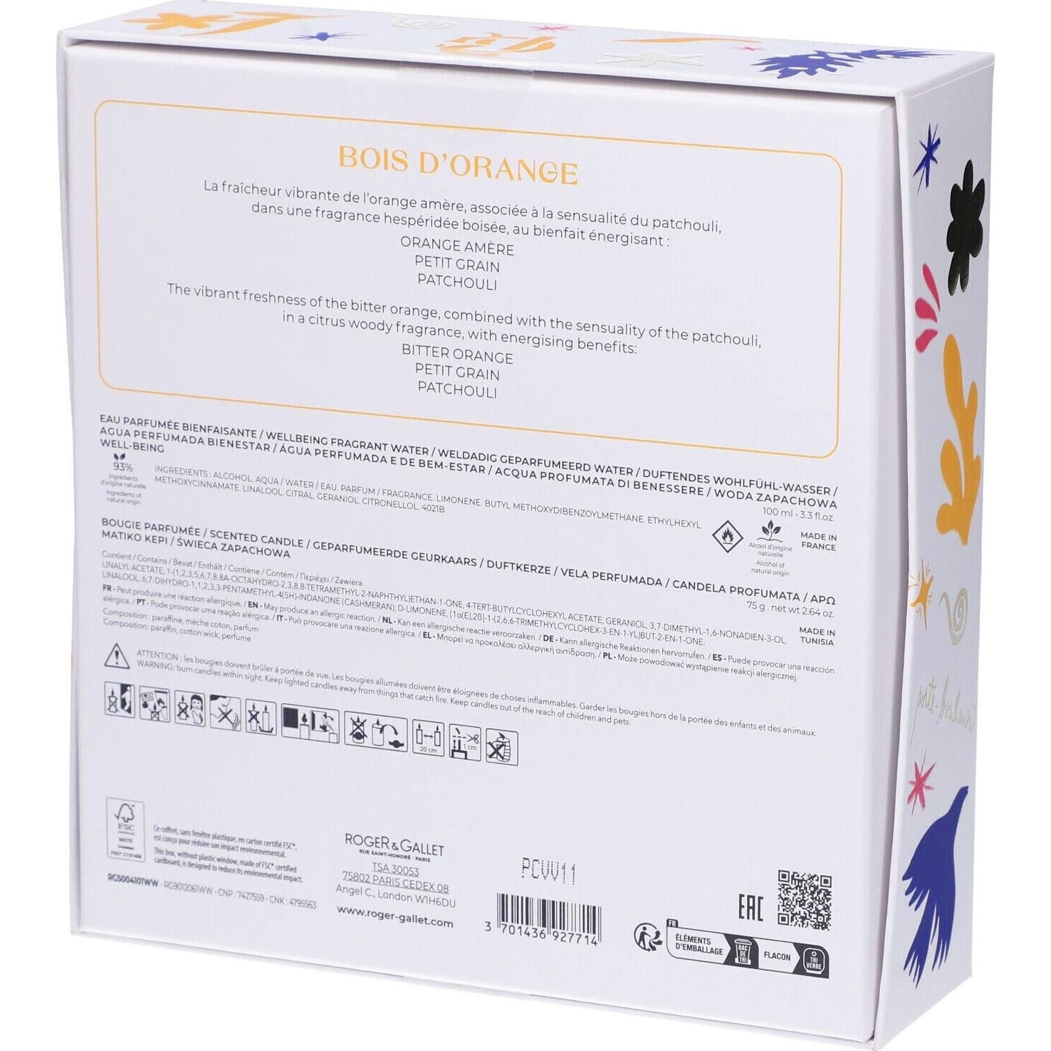 Roger & Gallet Madera de Laranjeira Pack Água Perfumada + Vela inclui uma água perfumada de 100 ml e uma vela perfumada para aromatizar o lar com notas cítricas e amadeiradas. A água perfumada está enriquecida com essência natural de laranja amarga.