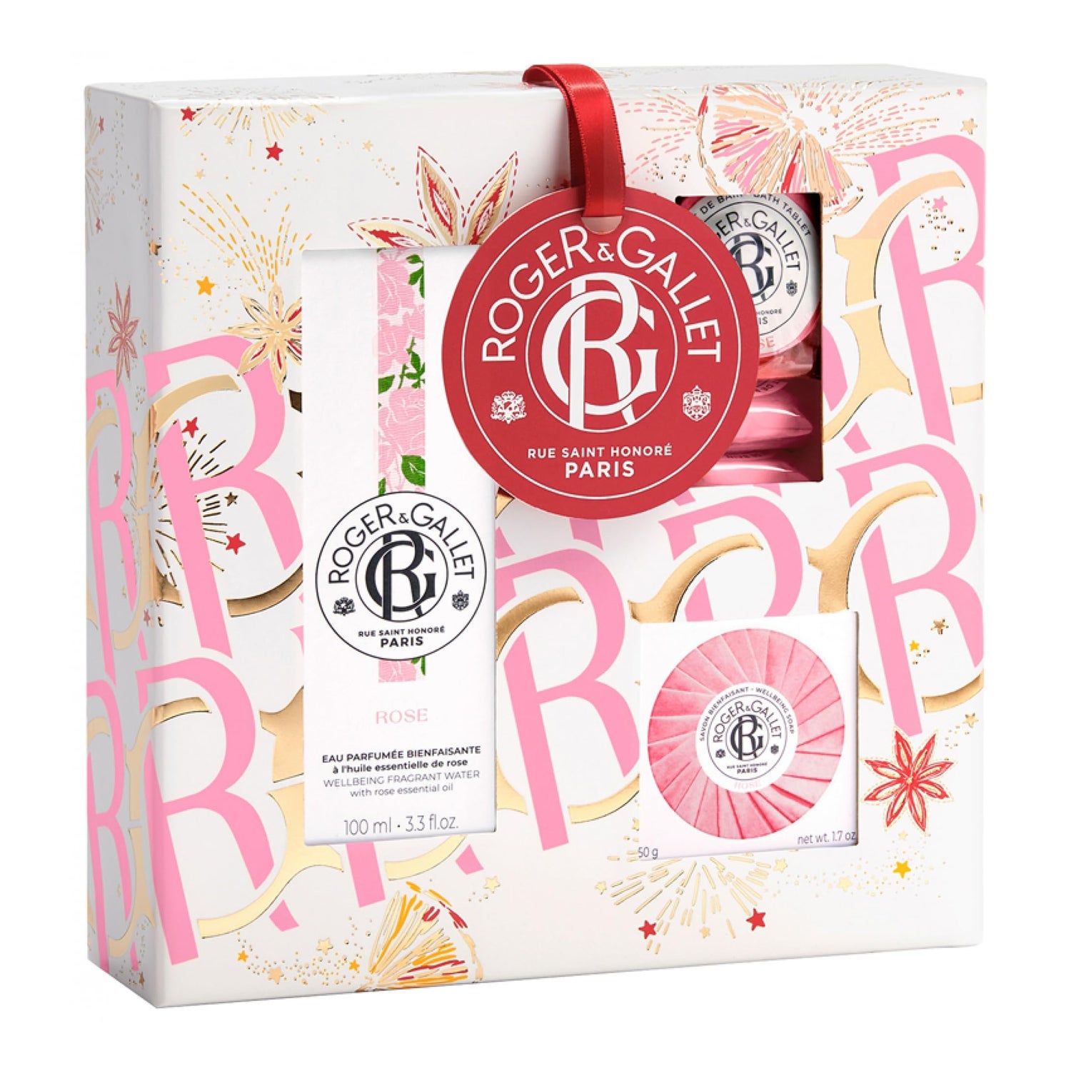 Roger & Gallet Rosa Set Natal 2023 é um conjunto de cuidados corporais perfeito para quem valoriza o bem-estar e a elegância. Inclui: