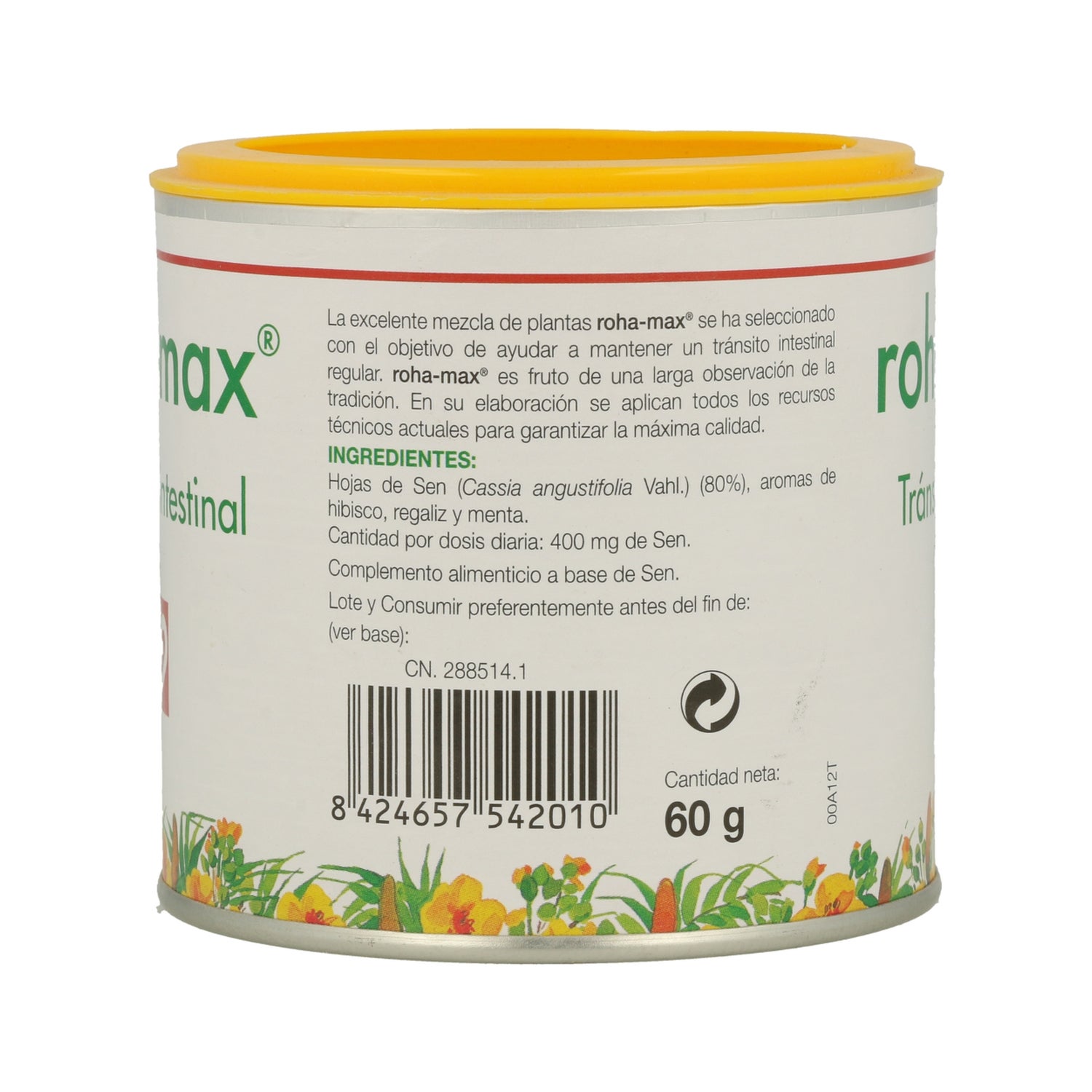 O Roha-Max® Laxante 60 g é um suplemento alimentar que oferece uma excelente mistura de plantas roha-max selecionadas com o objetivo de ajudar a manter um trânsito intestinal regular.