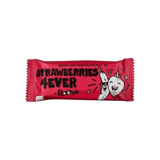 Barras feitas com 100% de ingredientes crus de origem natural e agricultura biológica. Têm sabor a morango e banana e são adoçados com pasta de tâmaras. Perfeito para lanchar entre as refeições e para levar para qualquer lugar confortavelmente, já que são embalados individualmente.