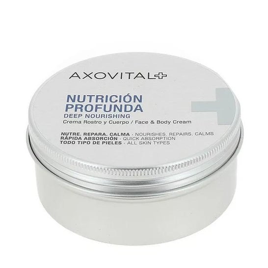 Axovital Creme Nutritivo Profundo Rosto e Corpo é um creme hidratante 2 em 1 que nutre, repara e acalma a pele do rosto e do corpo. A sua fórmula contém Manteiga de Karité 100% natural e pura, rica em vitaminas a, d, e e f, bem como glicerina que favorece a retenção de água na camada córnea e previne a desidratação. Este creme nutre durante 24 horas, regenera as zonas mais secas do corpo e previne o aparecimento de sinais de envelhecimento. A sua textura rica é rapidamente absorvida, proporcionando um conforto imediato à pele. Além disso, reforça a epiderme e deixa a pele suave e protegida. Ideal para manter a pele hidratada e cuidada.