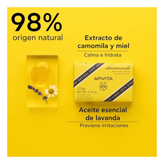Sabonete com camomila da Apivita é uma solução de higiene 100% natural que lhe dará a máxima limpeza para o seu rosto e corpo, mantendo a hidratação natural da pele. Além disso, graças ao seu efeito emoliente e suavizante, poderá acalmar e proteger a pele contra comichão e irritações. Isso torna-o um produto ideal para peles sensíveis.