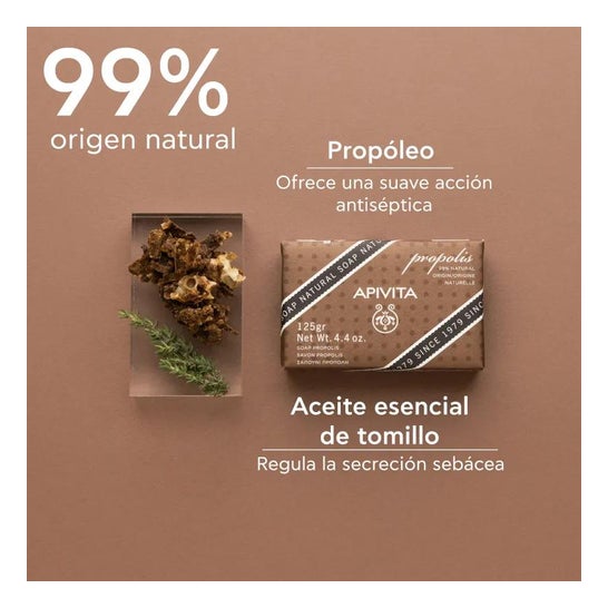 O sabonete de própolis da Apivita é uma solução de higiene 100% natural que o ajudará a limpar profundamente os poros e a regular a gordura devido à inclusão do extracto de própolis e do óleo essencial de tomilho na sua fórmula.