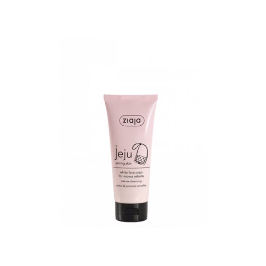 Ziaja Jeju Sabonete Facial Branco, sabonete facial com extrato de cistus, óleo de camélia japonesa e glicerina. Ajuda a controlar o excesso de sebo na pele facial. Sabonete de textura densa facilita a remoção de impurezas e limpeza dos poros em profundidade. Regula visivelmente a produção de sebo. Acabamento higienizado, revitalizado e agradavelmente suave.