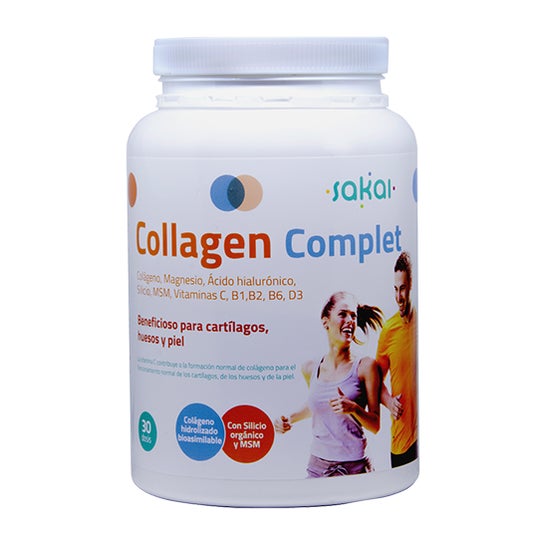 Sakai Collagen Complete 300g é um suplemento alimentar à base de colagénio, magnésio, ácido hialurónico, silício e vitaminas B1, B2, B6, C e D3. Ajuda a reduzir as dores articulares e a prevenir a perda de densidade óssea, bem como a reduzir o aparecimento de rugas na pele em consequência do envelhecimento cutâneo prematuro. Contém 300g.