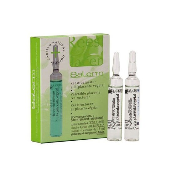 Ampolas Reestruturadoras de Salerm Placenta Vegetal Natural 4x13ml é um tratamento anti-queda de cabelo que ajuda a reduzir a queda do cabelo, dando-lhe uma nutrição extra. A sua fórmula inclui queratina hidrolisada natural que ajuda a fortalecer o cabelo e reforçar a sua estrutura natural. Também ajuda a aumentar a actividade do folículo piloso e a prevenir a queda do cabelo.
