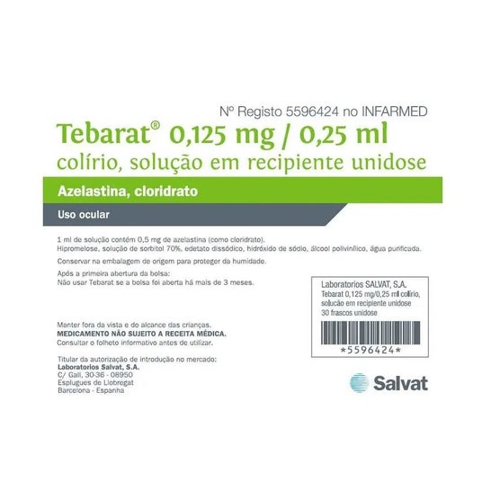 Tebarat contém a substância ativa cloridrato de azelastina, que pertence a um grupo de medicamentos denominados antialérgicos (anti-histamínicos).