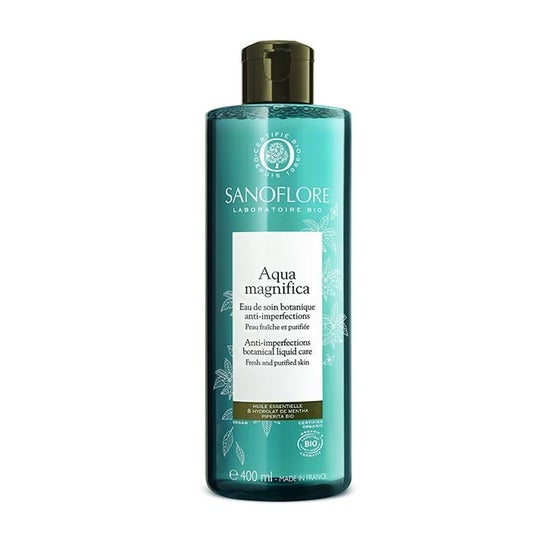 Sanoflore Aqua Magnifica é uma loção biológica certificada com óleo essencial de hortelã-pimenta que purifica a pele e reduz as manchas.