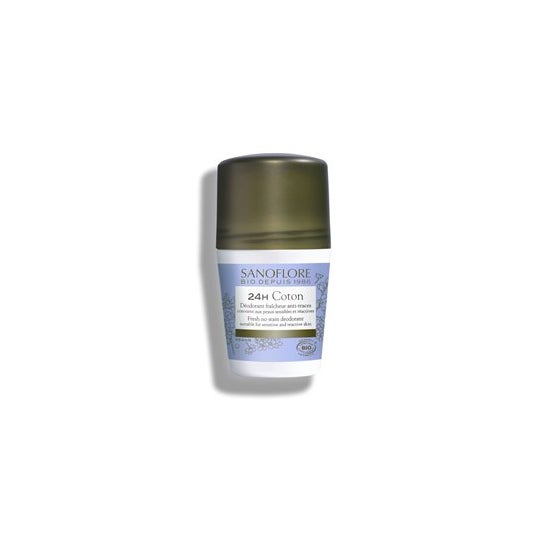 Sanoflore Coton Déodorant Efficacité 24h Bio 50ml foi concebido para respeitar o processo natural de transpiração. É feito de ingredientes cuidadosamente seleccionados para proporcionar uma proteção desodorizante natural, segura e de alto desempenho durante 24 horas: o Óleo de Linhaça Orgânico, com as suas propriedades absorventes, seca imediatamente e evita deixar vestígios na roupa. Associado ao Aloé Vera biológico, conhecido pelas suas propriedades calmantes e hidratantes, protege suavemente as axilas. Fragrância delicada e origem 100% natural. Ideal para peles sensíveis. Sem sais de alumínio. Sem parabenos. Testado dermatologicamente. Formulação vegana (sem ingredientes de origem animal ou derivados). Fabricado em França com ingredientes locais do comércio justo.