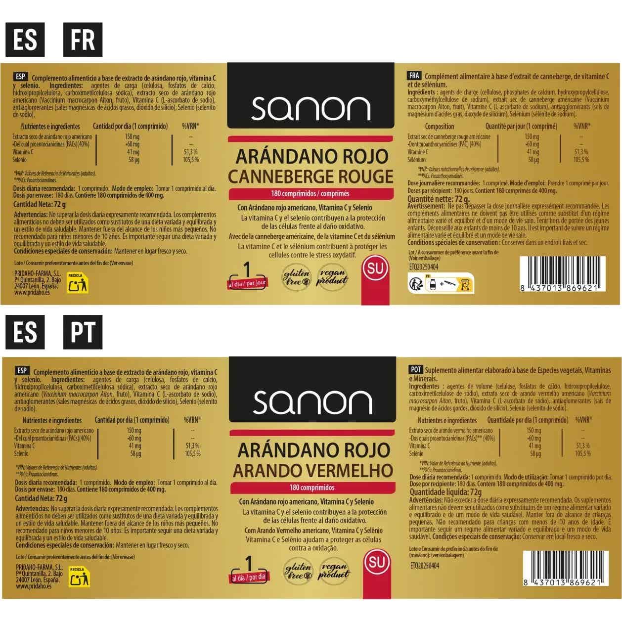 Sanon Arando Vermelho 180comp é um complemento alimentar à base de Arando vermelho americano, vitamina C e Selênio que ajuda a cuidar da saúde urinária e a proteger as células do dano oxidativo. Também contribui para eliminar as toxinas através dos líquidos de excreção e a prevenir a acumulação de bactérias nocivas nas mucosas genitais.