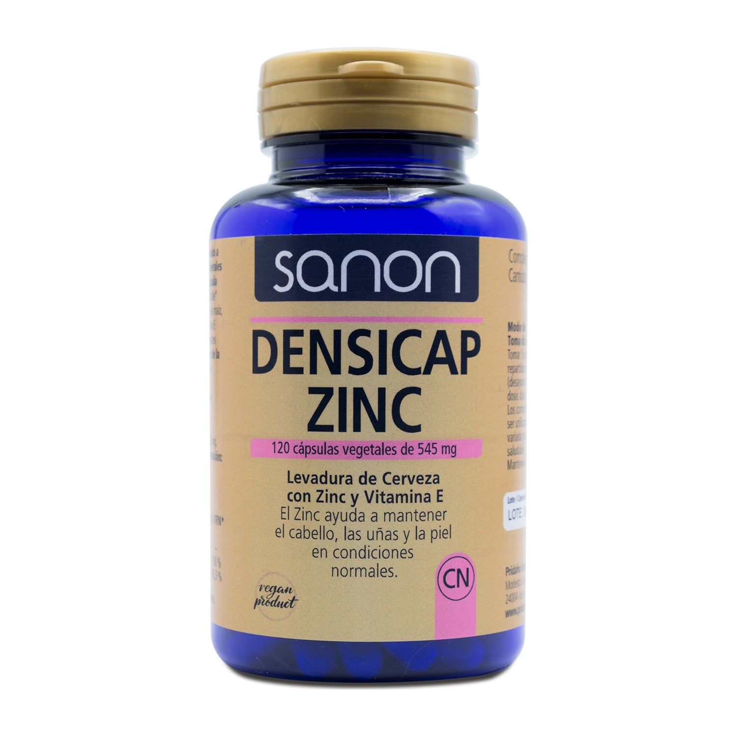 Sanon Densicap Zinc 120caps é um suplemento alimentar feito de levedura de cerveja, minerais e vitaminas, que contribuem para manter o cabelo, as unhas e a pele em condições normais. O seu elevado valor proteico fornece energia ao organismo, prevenindo a fadiga e melhorando o trânsito intestinal. A sua fórmula enriquecida com minerais e vitaminas ajuda a fortalecer o sistema imunitário e a melhorar a saúde muscular e óssea.