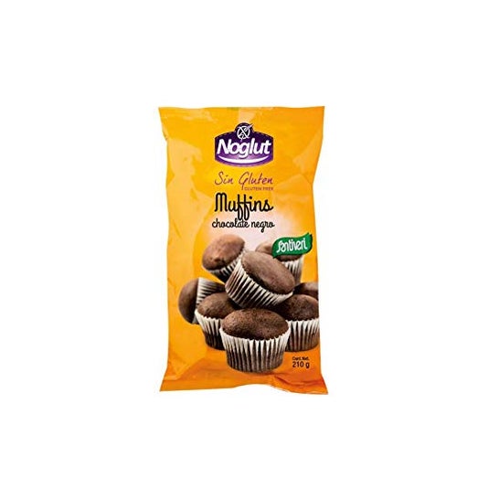 Santiveri Noglut Muffins de Chocolate Escuro de 210g. Muffins de chocolate preto tipo muffin. feitos com os melhores ingredientes naturais e seleccionados. sem glúten, por isso é adequado para pessoas com intolerâncias ou doença celíaca. muito fofos e saborosos, são um petisco perfeito para desfrutar ao pequeno-almoço ou petiscos.