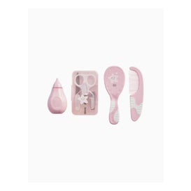 Conjunto de 7 acessórios especialmente concebidos para o cuidado e higiene dos mais pequenos. Contém um frasco conta-gotas, um aspirador nasal, um pente, uma escova de cerdas naturais, tesouras práticas, corta-unhas e quatro limas de unhas. Inclui um saco organizador para levar para todo o lado, com um tecido impermeável cor-de-rosa. Estes são produtos de longa duração feitos de materiais duráveis.