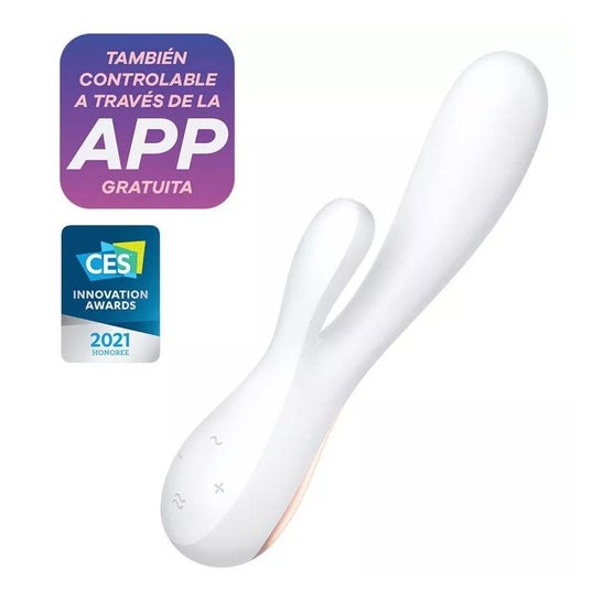 Vibrador e estimulador com 20 centímetros de comprimento. Tem duas pontas ergonómicas e flexíveis para a estimulação simultânea da vagina, da zona anal e do clítoris. Fabricado em silicone médico de alta qualidade. Fabricado em silicone médico macio. Adapta-se aos movimentos do corpo. Possui dois motores silenciosos e várias combinações de vibrações que ajudam a estimular os pontos erógenos do corpo. É silencioso, discreto e hipoalergénico, impermeável, à prova de água e de duche. Pode ser ligado e controlado via Bluetooth através da aplicação. Carrega a bateria com um cabo USB. Cor-de-rosa.