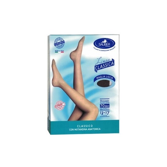 Os collants da linha clássica da Sauber Pharma oferecem uma compressão graduada, garantindo funcionalidade e resistência com o passar do tempo. A calcinha reforçada tipo short aumenta a durabilidade do produto, enquanto a ponta elástica e o calcanhar reforçado asseguram uma posição correta no tornozelo.